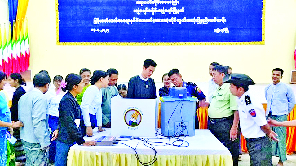 ကျင်းပပြုလုပ်မည့် ရွေးကောက်ပွဲတွင် ပြည်တွင်းပညာရှင်များ တီထွင်ထုတ်လုပ်ထားသည့် မြန်မာအီလက်ထရောနစ် မဲပေးစက် (MEVM) များအသုံးပြု၍ ဆန္ဒမဲပေးနိုင်ရန် ပြည်ထောင်စု ရွေးကောက်ပွဲကော်မရှင်က စီစဉ်ဆောင်ရွက်လျက်ရှိပြီး ရွေးကောက်ပွဲတွင် မဲရုံအဖွဲ့ဝင်အဖြစ် တာဝန်ထမ်းဆောင်မည့်သူများအား “မဲပေးစက်ကိုင်တွယ်အသုံးပြုနည်း” သင်တန်းများကို မြို့နယ် အသီးသီးတွင် ဖွင့်လှစ်ပို့ချ ပေးလျက်ရှိပါသည်။