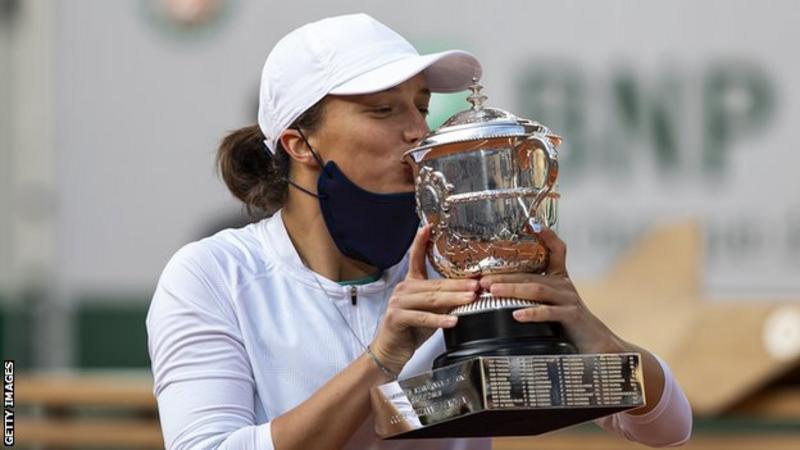 ဒီနေ့မနက် အစောပိုင်းက ယှဉ်ပြိုင်ခဲ့တဲ့ ပြင်သစ်အမျိုးသမီးတစ်ဦးချင်း တင်းနစ်ပြိုင်ပွဲမှာ ပိုလန်တင်းနစ်မယ် ဆွီယာတာ က ဦးစားပေးအဆင့် (၄) သတ်မှတ်ခံရတဲ့ အမေရိကန်တင်းနစ်မယ် ဆိုဖီယာကီနင်ကို ၆-၄၊ ၆-၁ နဲ့ နှစ်ပွဲပြတ် အနိုင်ယူပြီး သူ့ရဲ့ ပထမဆုံးဂရင်းစလင်း ချန်ပီယံဆုအဖြစ် ရယူသွားပါတယ်။