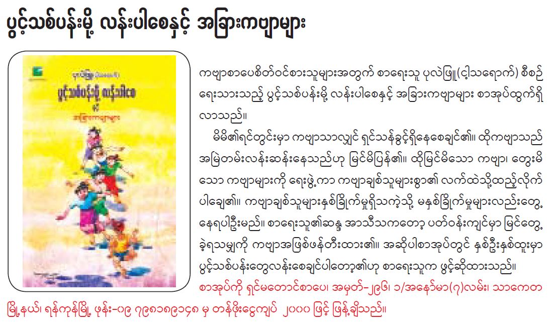 ပွင့်သစ်ပန်းမို့ လန်းပါစေနှင့် အခြားကဗျာများ စာအုပ်ထွက်ရှိ