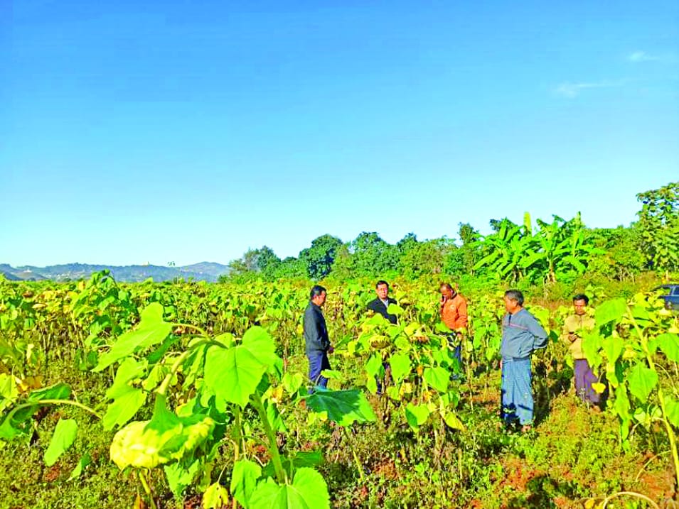 ရှမ်းပြည်နယ်သမဝါယမဦးစီးဌာန ပြည်နယ်ဦးစီးမှူး ဦးကျော်မိုးတင့်နှင့် တာဝန်ရှိသူများသည် ပင်းတယမြို့နယ်အတွင်း သမဝါယမလုပ်ငန်းများ ဖွံ့ဖြိုးတိုးတက်ရေးအတွက် ဒီဇင်ဘာ ၇ ရက် နံနက်ပိုင်းတွင် ဓနုကိုယ်ပိုင်အုပ်ချုပ်ခွင့်ရဒေသ ပင်းတယမြို့နယ် တမဲကျေးရွာအုပ်စု အင်းပက်လက်ကျေးရွာရှိ စီမံကိန်းသီးနှံ(သက်တန့်ရောင်စီမံကိန်း) စိုက်ပျိုးရေးနှင့် အထွေထွေသမဝါယမအသင်းသားများ ဆောင်းနေကြာ စိုက်ပျိုးထားရှိမှုကို ကွင်းဆင်းကြည့်ရှု စစ်ဆေးသည်။