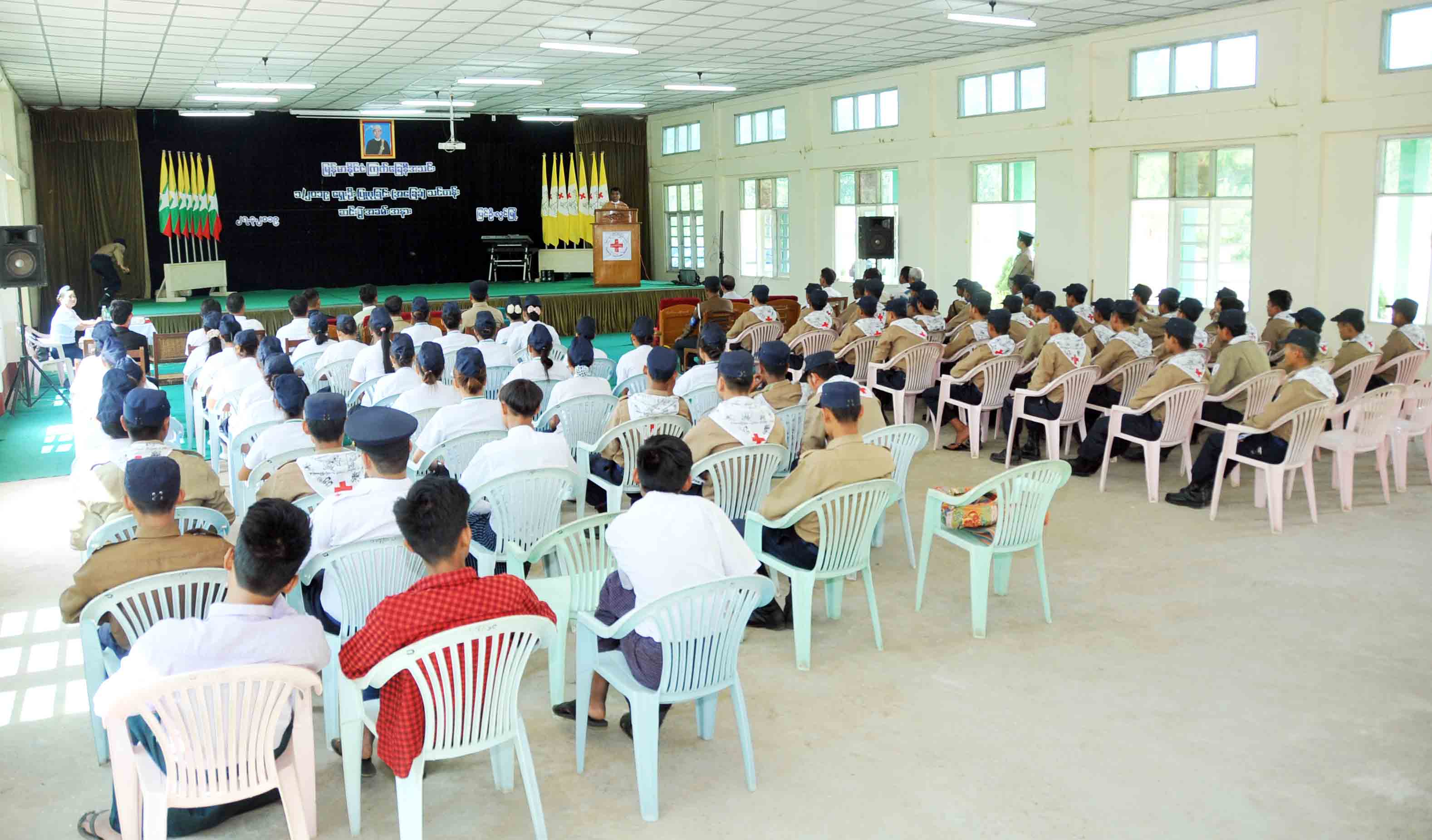မန္တလေးတိုင်းဒေသကြီး၊ ပြင်ဦးလွင်မြို့နယ်၊ မြန်မာနိုင်ငံ ကြက်ခြေနီအသင်းမှ ကြီးမှူးကျင်းပသော (၁/၂၀၁၉) ရှေးဦးပြုစုခြင်း (အခြေခံ) သင်တန်းဆင်းပွဲကို ယနေ့ နံနက် ၁၀ နာရီက မြေတိုင်းကျောင်းခန်းမ၌ ကျင်းပပြုလုပ်သည်။