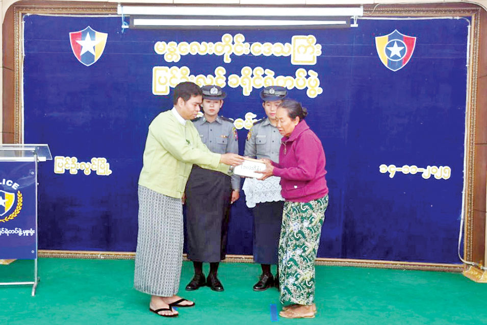မန္တလေးတိုင်းဒေသကြီး ပြင်ဦးလွင်မြို့ မြို့မရဲစခန်း (ပ) ၂၄၁/၂၀၂၅ ရာဇသတ်ကြီး ပုဒ်မ ၃၀၂/၃၉၄ အမှုမှ ရပ်ကွက်ကြီး(၃) နာရီစင်အနီးရှိ အောင်စံပယ် ရွှေဆိုင်အား ဝင်ရောက်လုယက်မှုတွင် တရားခံဖမ်းဆီးရမိရေး စွမ်းစွမ်းတမံ ပူးပေါင်းပါဝင်ပေးခဲ့သည့် ပြည်သူများအား ဂုဏ်ပြုဆုချီးမြှင့်ပွဲ အခမ်းအနားကို ယမန်နေ့နံနက်ပိုင်းက ပြင်ဦးလွင်ခရိုင် ရဲတပ်ဖွဲ့မှူးရုံးရှိ ရဲကျော်သူခန်းမဆောင်၌ ကျင်းပသည်။