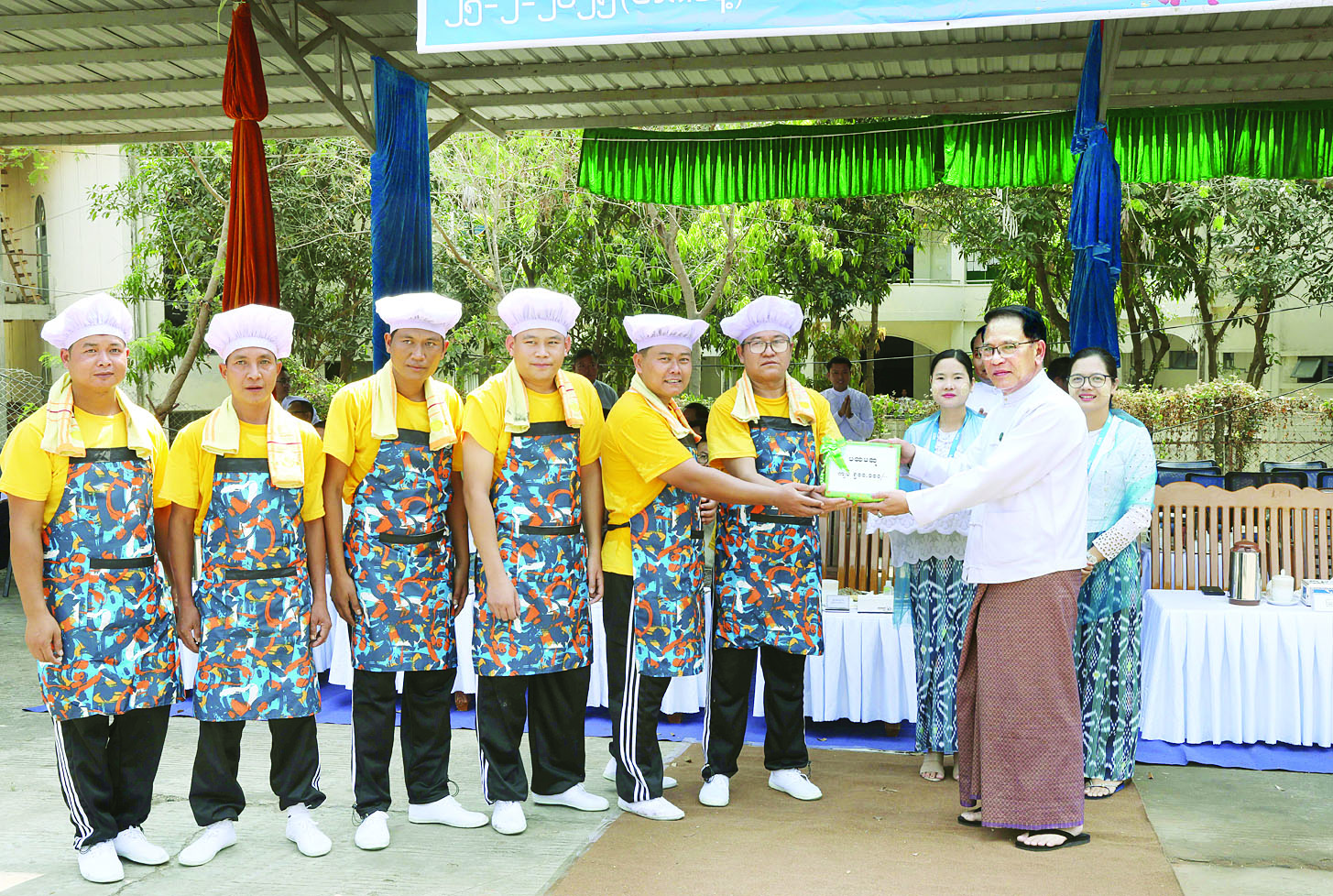 ထို့နောက် ပြိုင်ပွဲဝင် အသင်းခြောက်သင်းဖြစ်သည့် ဝန်ကြီးရုံး၊ မြန်မာ့အသံနှင့် ရုပ်မြင်သံကြား၊ ပြန်ကြားရေးနှင့် ပြည်သူ့ ဆက်ဆံရေးဦးစီးဌာန၊ ပုံနှိပ်ရေးနှင့်ထုတ်ဝေရေးဦးစီးဌာန၊ မီဒီယာဖွံ့ဖြိုးတိုးတက်ရေးဦးစီးဌာနနှင့် သတင်းနှင့် စာနယ်ဇင်းလုပ်ငန်းတို့က မြန်မာ့ရိုးရာယဉ်ကျေးမှု အစဉ်အလာအတိုင်း တပျော်တပါး ထမနဲထိုးယှဉ်ပြိုင်ကြပြီး အားပေး ကြသူများက အိုးစည်ဗုံမောင်းများ၊ အကအဖွဲ့များ၊ သံချပ်များ၊ သီချင်းများ ပြိုင်တူသီဆိုကြပြီး အပြိုင်အဆိုင် အားပေး ကြသည်။