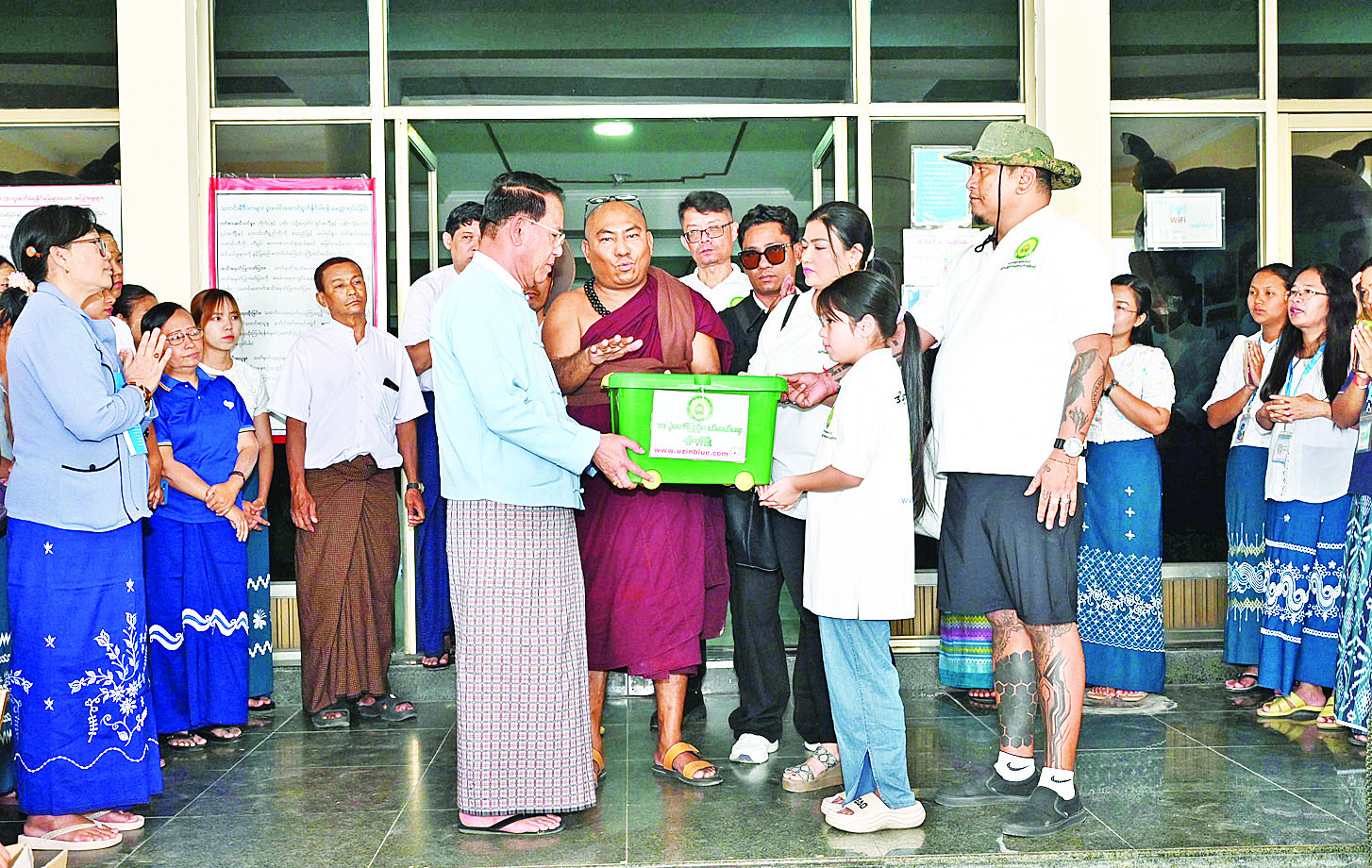 ယင်းနောက် အရှင်ကုမာရဦးဆောင်သော အလိုတော်ပြည့်ကယ်ဆယ်ရေးအဖွဲ့က ထောက်ပံ့ရေးပစ္စည်းများ ပေးအပ်လှူဒါန်းရာ ပြည်ထောင်စုဝန်ကြီးကလက်ခံပြီး ဂုဏ်ပြုမှတ်တမ်းလွှာနှင့် အမှတ်တရလက်ဆောင်ပစ္စည်းများ ပြန်လည်ပေးအပ်သည်။
