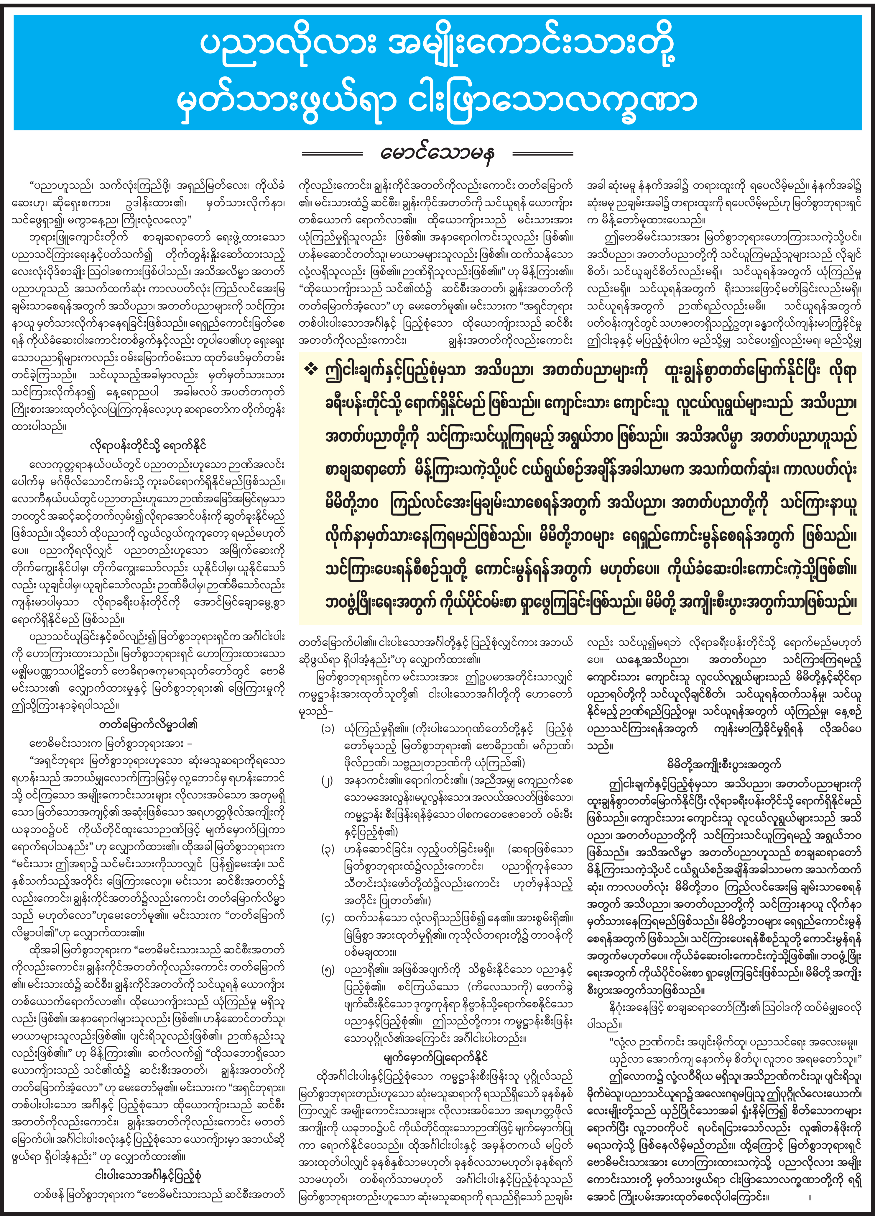 ပညာ လိုလားသည့် အမျိုးကောင်းသားတို့ မှတ်သားဖွယ်ရာ ငါးဖြာသောလက္ခဏာ