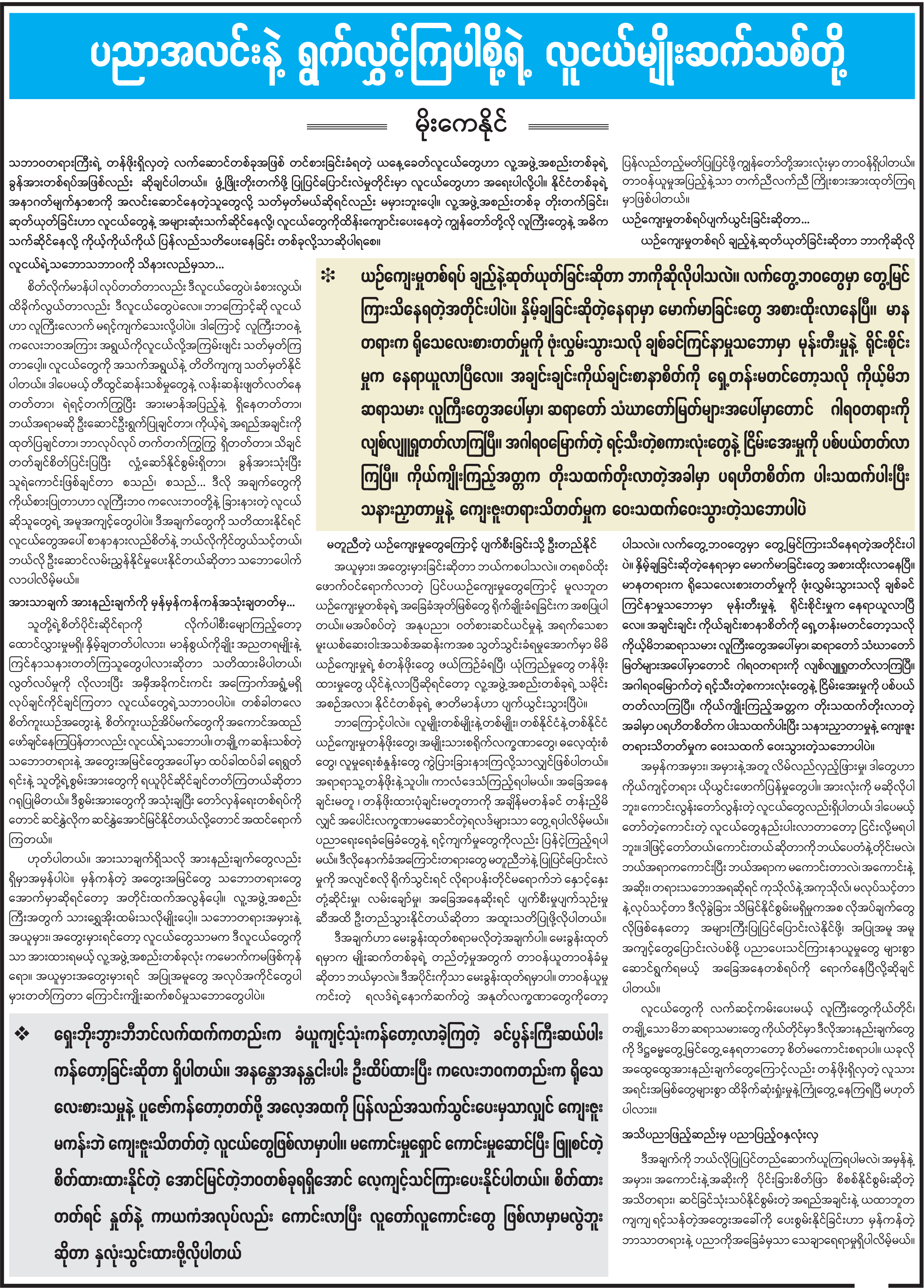 ပညာအလင်းနဲ့ ရွက်လွှင့်ကြပါစို့ရဲ့ လူငယ်မျိုးဆက်သစ်တို့