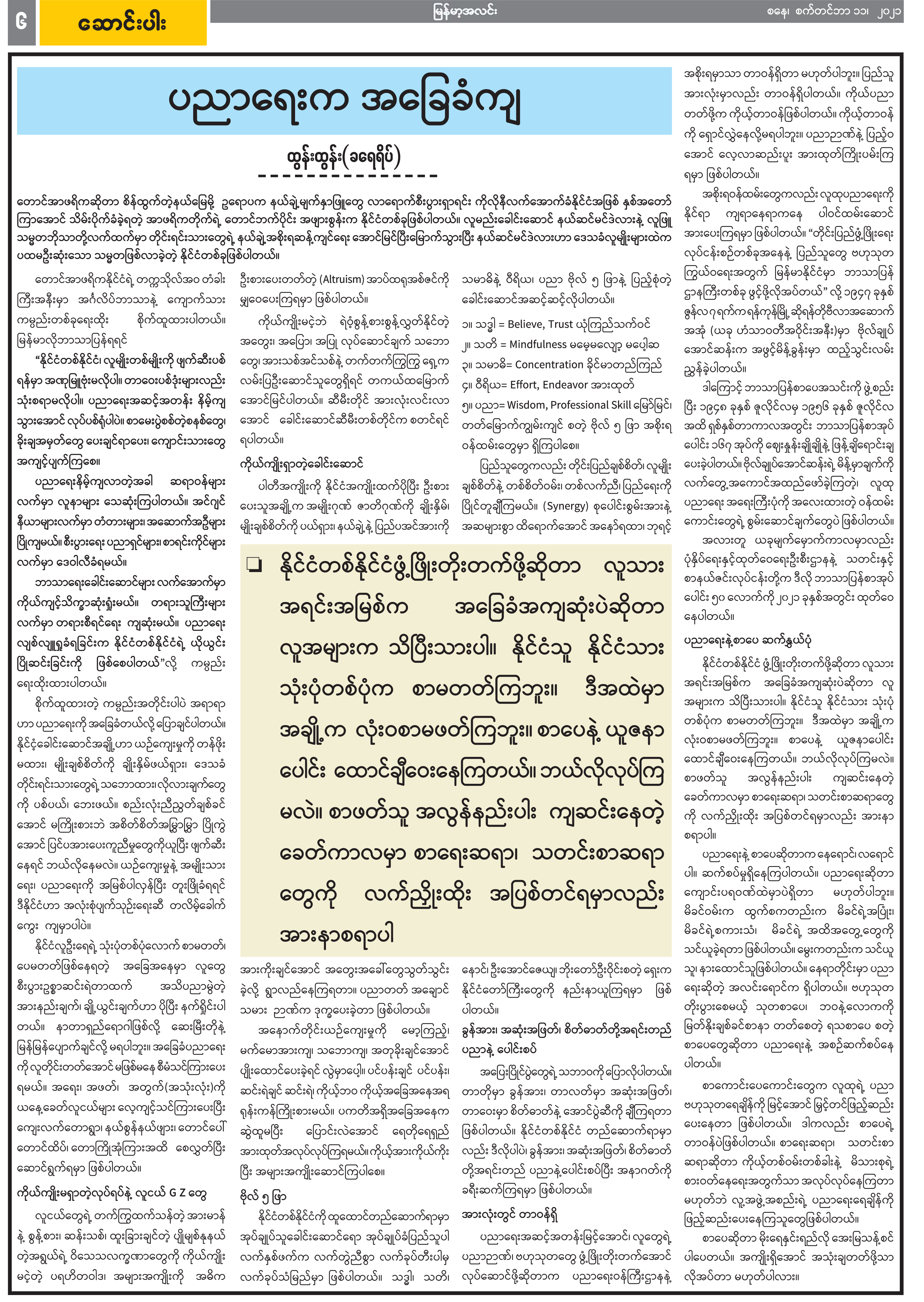 ပညာရေးက အခြေခံကျ