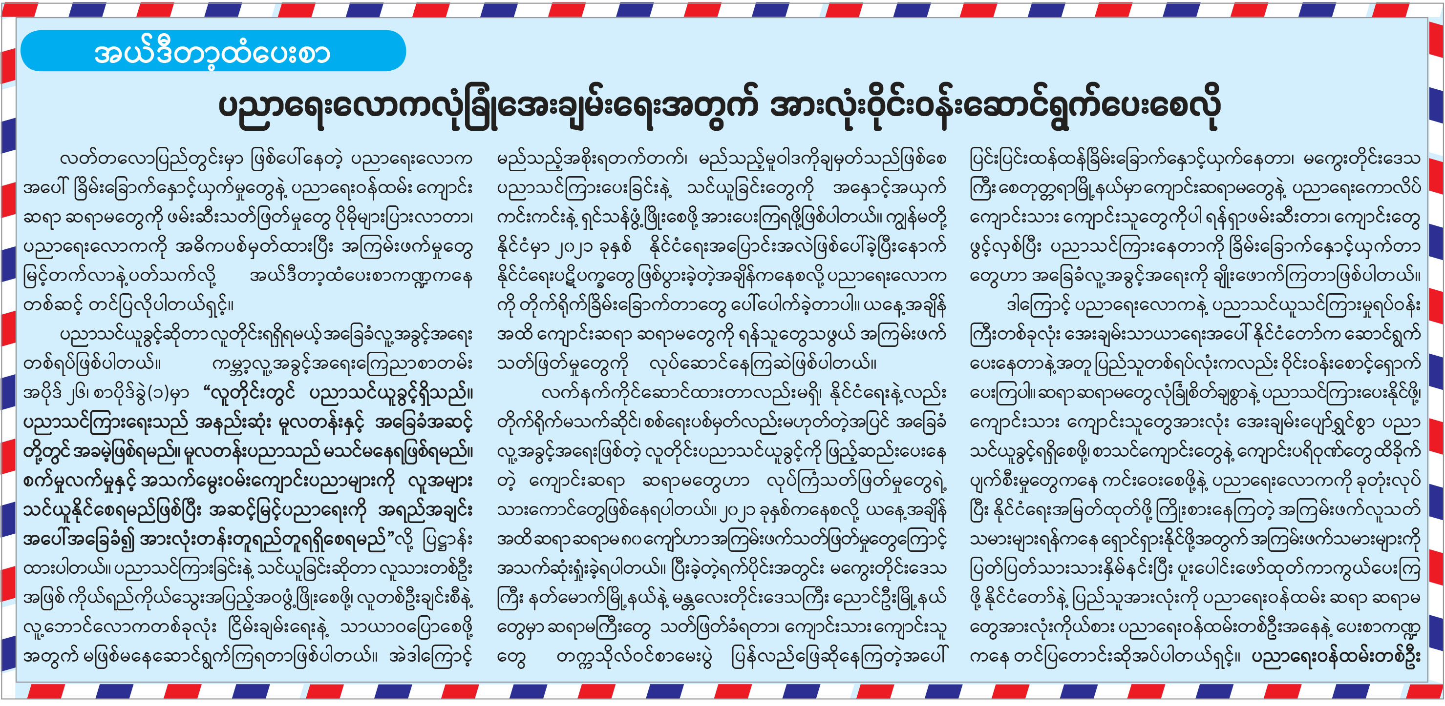 ပညာရေးလောက လုံခြုံအေးချမ်းရေးအတွက် အားလုံးဝိုင်းဝန်းဆောင်ရွက်ပေးစေလို