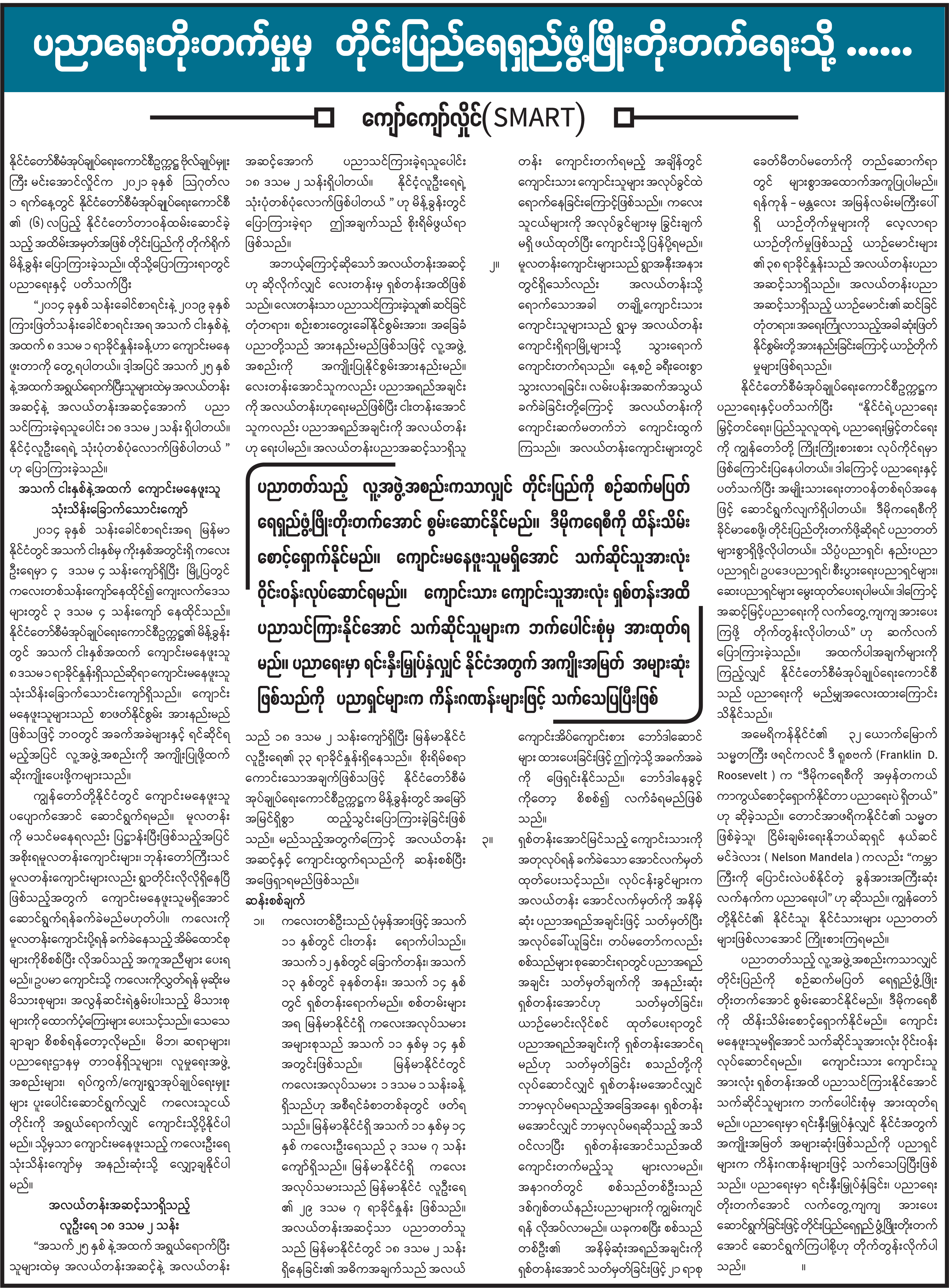 ပညာရေးတိုးတက်မှုမှ တိုင်းပြည်ရေရှည်ဖွံ့ဖြိုးတိုးတက်ရေးသို့