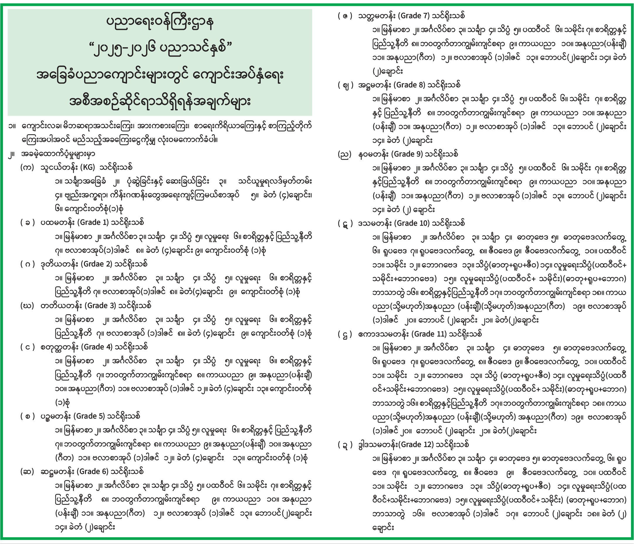 ပညာရေးဝန်ကြီးဌာန “၂၀၂၅-၂၀၂၆ ပညာသင်နှစ်” အခြေခံပညာကျောင်းများတွင် ကျောင်းအပ်နှံရေး အစီအစဉ်ဆိုင်ရာသိရှိရန်အချက်များ