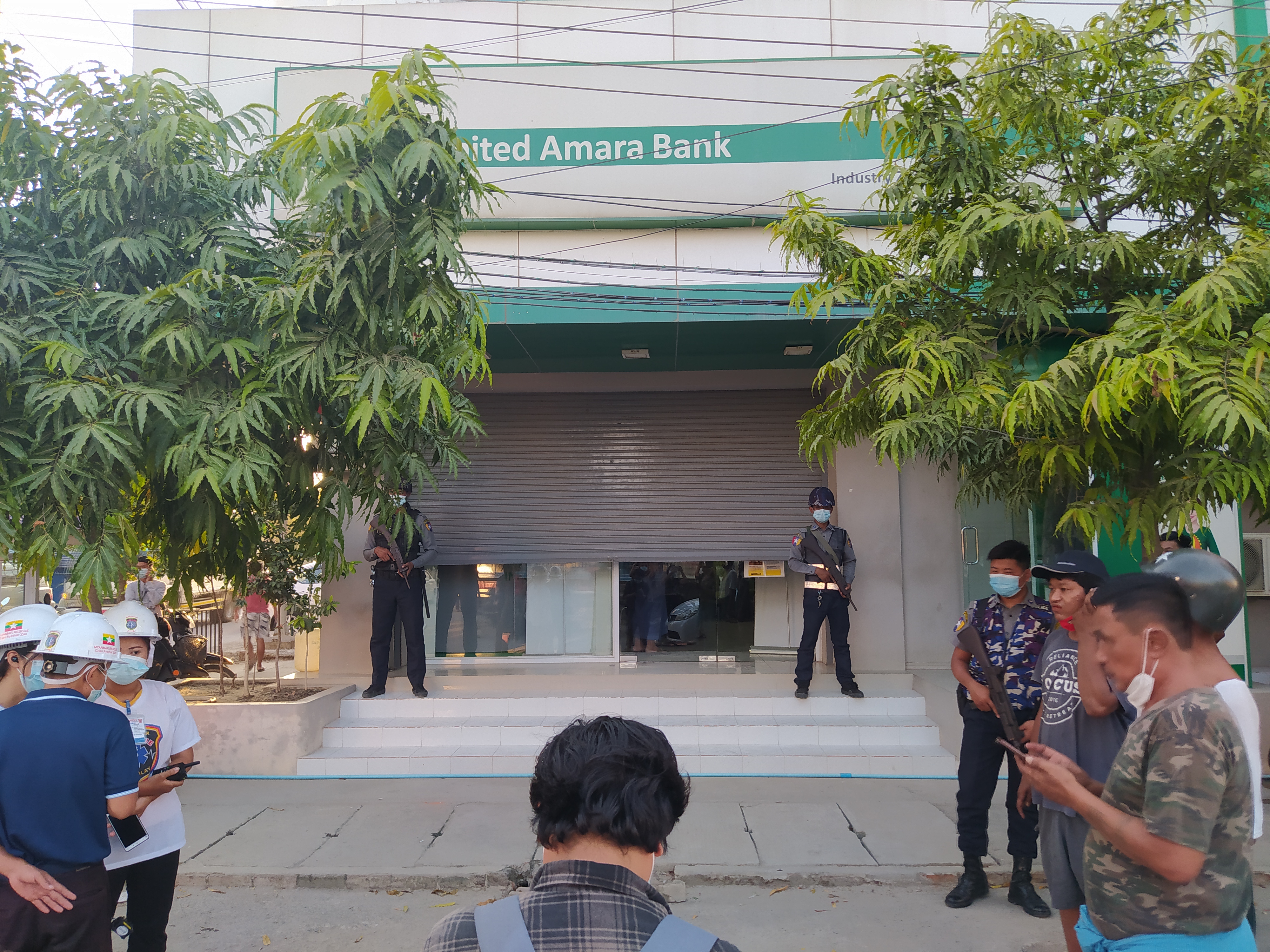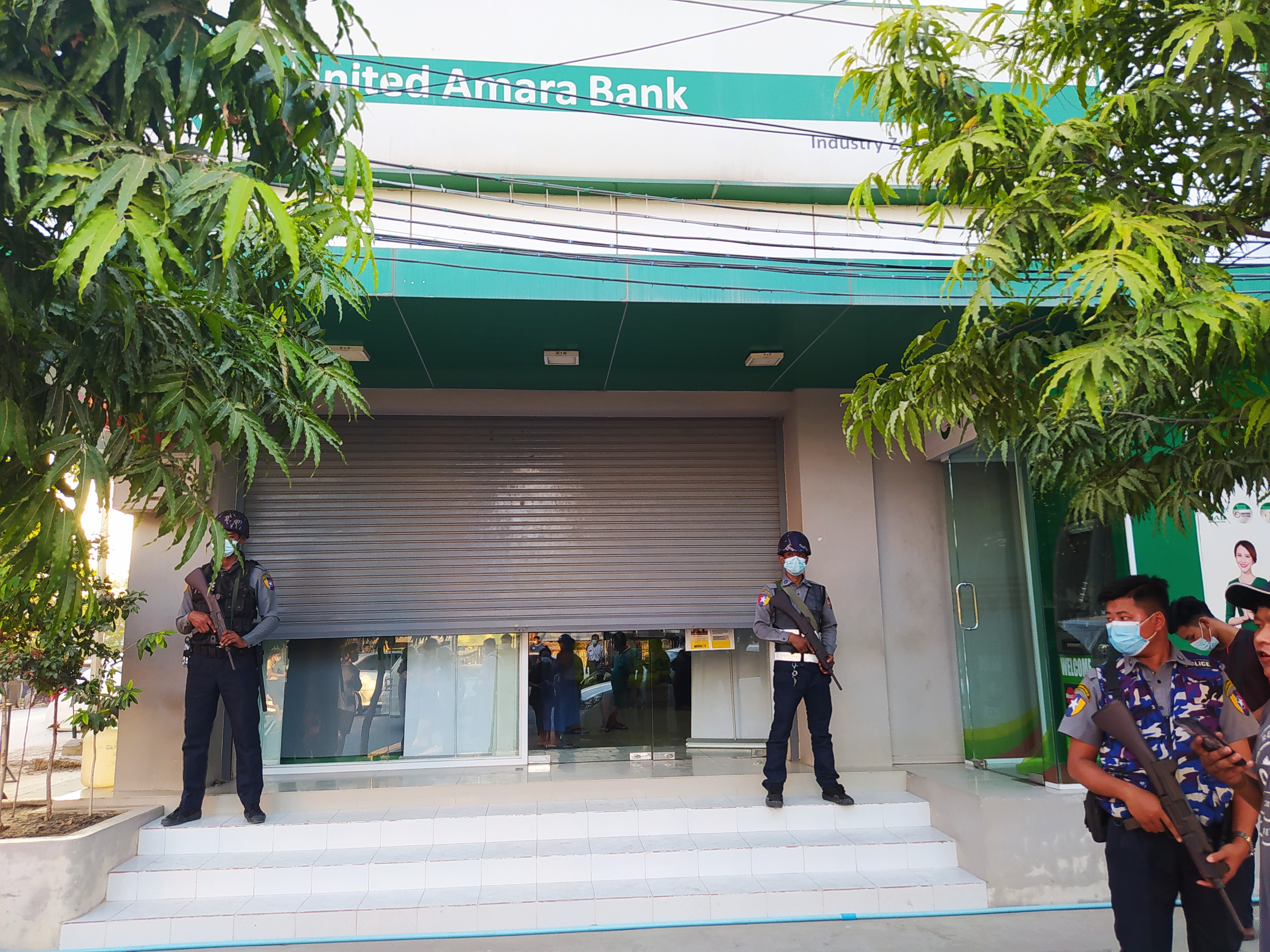 ယနေ့ ညနေ နာရီခွဲခန့်က သေနတ်နှင့် လက်ထိတ်ပါ အမျိုးသားတစ်ဦးသည် ဘဏ်အတွင်းသို့ ဝင်ရောက်ကာ ငွေကျပ်သိန်း ၂၀၀ လုယက်မှု ဖြစ်ပွားခဲ့ခြင်းဖြစ်သည်။