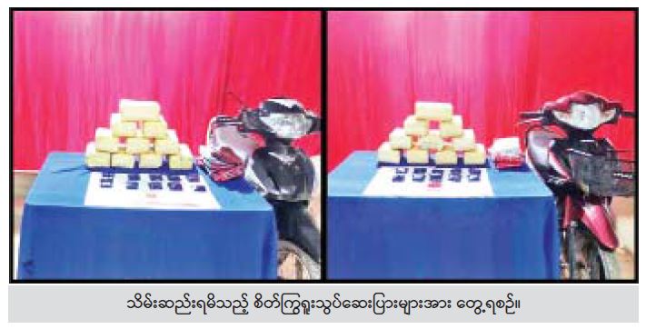 မူးယစ်ဆေးဝါးတားဆီးနှိမ်နင်း ရေးရဲတပ်ဖွဲ့မှတပ်ဖွဲ့ဝင်များ ပါဝင်သော ပူးပေါင်းအဖွဲ့သည် ဇန်နဝါရီ ၁၄ ရက် နံနက် ၁၁ နာရီခွဲတွင် ပြည်ကြီးတံခွန်မြို့နယ် (ခ) ရပ်ကွက် ၁၁၅ လမ်းနှင့် ၅၈ လမ်းထောင့်တွင် နိုင်နိုင်ငြိမ်း(ခ) မောင်ငြိမ်းနှင့် သန်းထက်အောင်တို့ကို CROWN အမျိုးအစား ယာဉ်ဖြင့်လည်းကောင်း၊ ချစ်မင်း အား ဆိုင်ကယ်တစ်စီးဖြင့်လည်းကောင်း မသင်္ကာဖွယ်တွေ့ရှိသဖြင့် စစ်ဆေးရှာဖွေရာ နိုင်နိုင်ငြိမ်း(ခ)မောင်ငြိမ်းထံမှ စိတ်ကြွရူးသွပ်ဆေးပြား ၂၀၀၀၀ ကိုလည်းကောင်း။