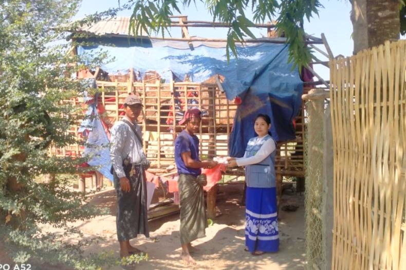အဆိုပါလေဘေးသင့် နေအိမ်နှစ်လုံးအတွက် အိမ်ဆောက်ပစ္စည်းဖိုး ငွေကျပ် ၁ သိန်းနှင့် အိမ်ထောင်စုဝင်(၈)ဦးအတွက် တစ်ဦးလျှင် ၂၁၀၀ကျပ်နှုန်းဖြင့် ဆန်ဖိုး ထောက်ပံ့ငွေ ၁၆၈၀၀ကျပ် အပါအဝင် စုစုပေါင်း ထောက်ပံ့ငွေကျပ် ၁၁၆၈၀၀ ကို ဧပြီ ၂၈ ရက် နံနက်ပိုင်း က ပြည်ခရိုင်ဘေးအန္တရာယ်ဆိုင်ရာစီမံခန့်ခွဲမှုဦးစီးဌာနမှ တာဝန်ရှိသူများက လေဘေးသင့် ကျေးရွာအိမ်ထောင်စုဝင်များထံအရောက် သွားရောက်ထောက်ပံ့ပေးအပ်ခဲ့ ကြောင်း သိရသည်။