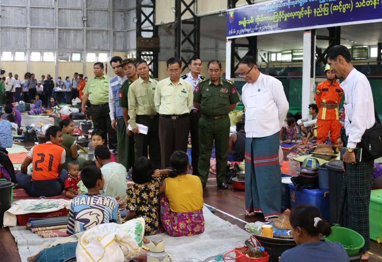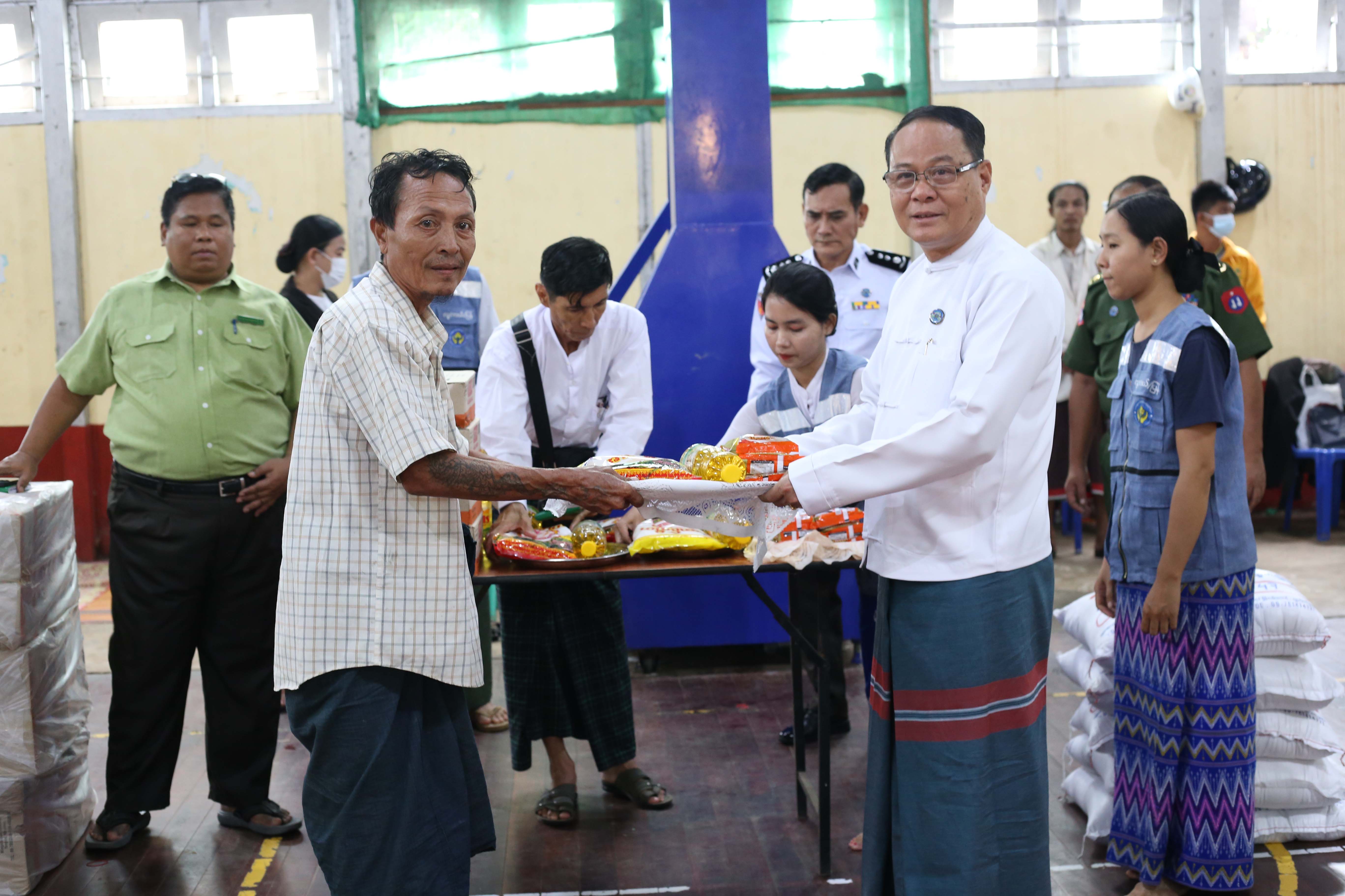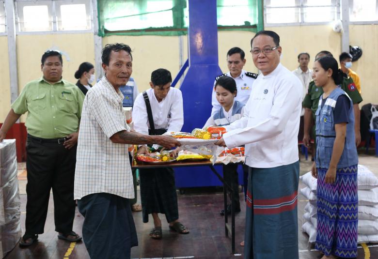 အလားတူ ပြည်နယ်ဝန်ကြီးချုပ်နှင့်အဖွဲ့သည် ကရင်ပြည်နယ်၊ ဘားအံမြို့တွင် မိုးသည်းထန်စွာ ရွာသွန်းမှုကြောင့် သံလွင်မြစ်ရေ မြင့်တက်လာပြီး ဘားအံမြို့ပေါ် ရပ်ကွက်အချို့ရှိ မြေနိမ့်ပိုင်းနေရာများတွင် ရေများဝင်ရောက်လာသည့်အတွက် တပ်မတော်၊ ရဲတပ်ဖွဲ့၊ မီးသတ်တပ်ဖွဲ့နှင့် လူမှုရေးအသင်းအဖွဲ့များက ရေဘေးသင့်ပြည်သူများအား ဘေးလွတ်ရာနေရာများသို့ ယာယီရွှေ့ပြောင်း နေရာချထားပေးမှုကို သွားရောက်တွေ့ဆုံအားပေး၍ ဘားအံမြို့၊ အမှတ်(၁)ရပ်ကွက်၊ မိုးလုံလေလုံ အားကစားခန်းမ ရေဘေးကယ်ဆယ်ရေးစခန်းရှိ အိမ်ထောင်စုများအား စားသောက်ကုန်များ ထောက်ပံ့ပေးအပ်သည်။