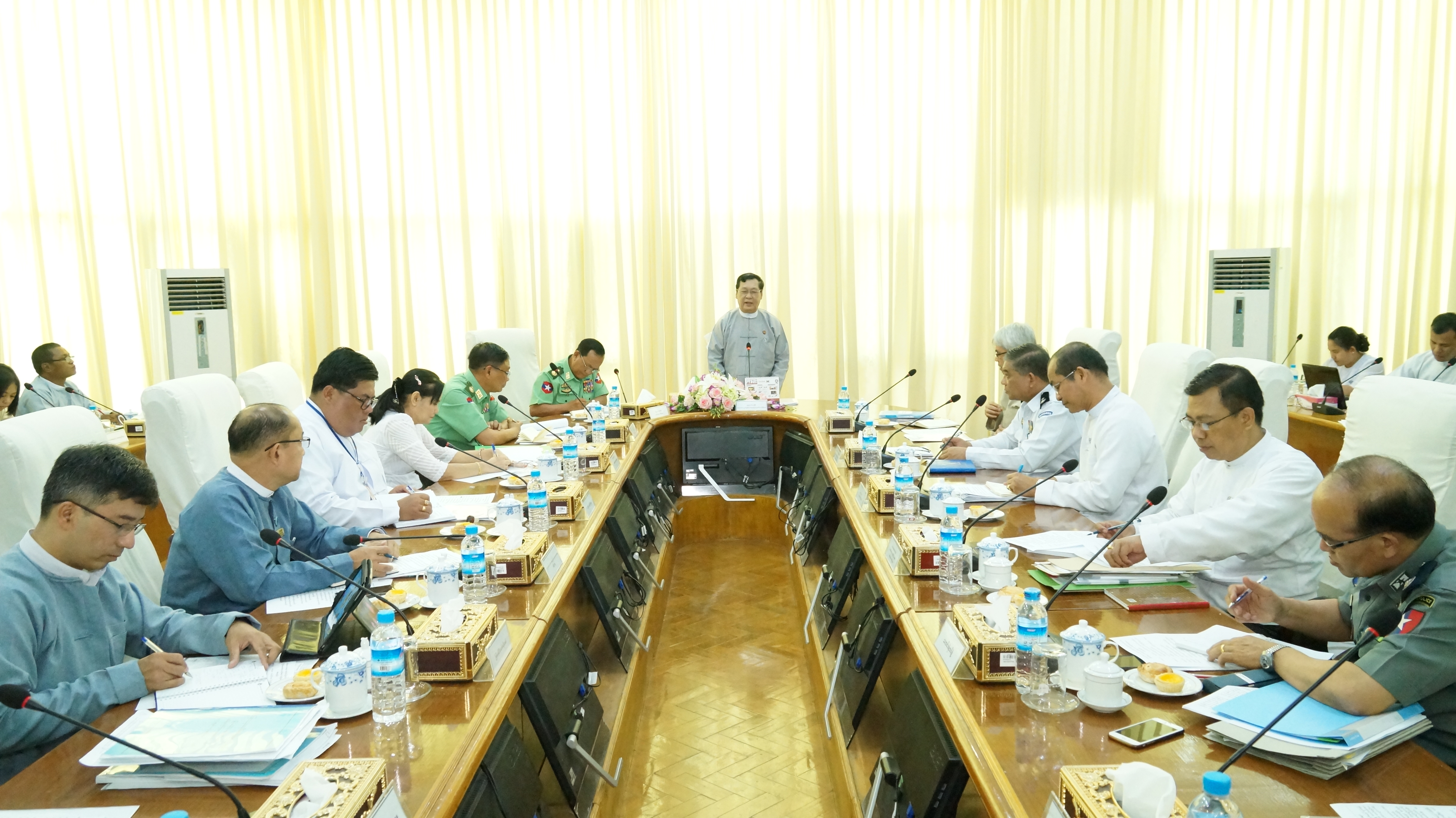 အစည်းအဝေးတွင်ကော်မတီဥက္ကဋ္ဌ၊ အလုပ်သမား၊ လူဝင်မှုကြီးကြပ်ရေးနှင့်ပြည်သူ့အင်အား ဝန်ကြီးဌာန၊ ပြည်ထောင်စုဝန်ကြီးဦးသိန်းဆွေ၊ နယ်စပ်ရေးရာဝန်ကြီးဌာန၊ ပြည်ထောင်စုဝန်ကြီး ဒုတိယဗိုလ်ချုပ်ကြီးရဲအောင်နှင့် ကော်မတီအဖွဲ့ဝင်များဖြစ်ကြသော ပြည်ထဲရေးဝန်ကြီးဌာန နှင့်ပို့ဆောင်ရေးနှင့်ဆက်သွယ်ရေးဝန်ကြီးဌာနမှ ဒုတိယဝန်ကြီးများ၊ ပြည်ထောင်စုစာရင်းစစ်ချုပ်ရုံး၊ နိုင်ငံခြားရေးဝန်ကြီးဌာန၊ မြန်မာနိုင်ငံတော်ဗဟိုဘဏ်၊ လူမှုဝန်ထမ်းကယ်ဆယ်ရေးနှင့် ပြန်လည် နေရာချထားရေးဝန်ကြီးဌာန၊ သတင်းရဲတပ်ဖွဲ့၊ ရေကြောင်းပို့ဆောင်ရေးဦးစီးဌာန၊ အထွေထွေ အုပ်ချုပ်ရေးဦးစီးဌာနတို့မှအမြဲတမ်းအတွင်းဝန်များ၊တာဝန်ရှိသူများနှင့်ဝန်ကြီးဌာနမှတာဝန်ရှိသူများ တက်ရောက်ကြသည်။