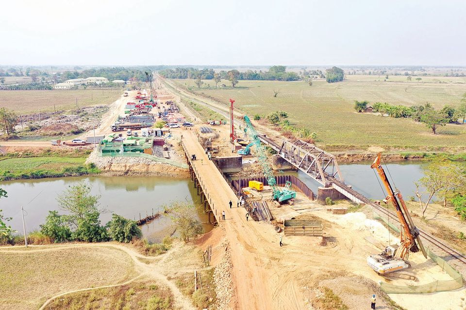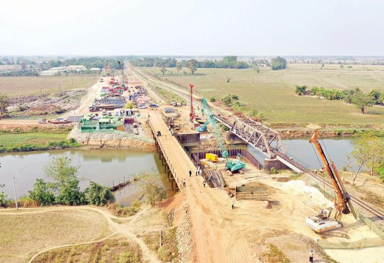 ရန်ကုန် - မန္တလေးရထားလမ်းအဆင့်မြှင့်တင်ရေး စီမံကိန်း အကောင်အထည်ဖော်နေချိန်တွင် ရထားလမ်း ပိုင်းအလိုက် ဖြည့်ဆည်းဆောင်ရွက်ခြင်းနှင့် အဆင့်မြှင့် တင်ခြင်းများ အကောင်အထည်ဖော်လျက်ရှိသည်။