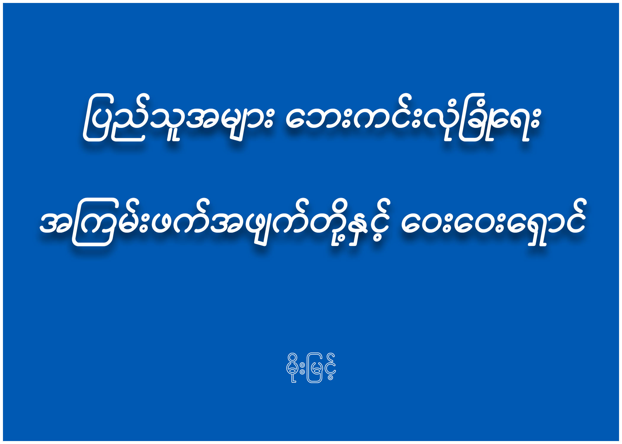နိုင်ငံတစ်ဝန်း တည်ငြိမ်အေးချမ်းမှုများ အမြန်ဆုံးပြန်လည်ရရှိရေးသည် လက်ရှိကာလ မိမိတို့နိုင်ငံ၏  ပကတိ လိုအပ်ချက်ပင်ဖြစ်သည်။ လက်နက်ကိုင်သောင်းကျန်းသူများ အားကောင်းသည့် ဒေသများတွင် ၎င်းတို့၏ ဥပဒေမဲ့လုပ်ရပ်များ၊ အကြမ်းဖက်လုပ်ရပ်များကြောင့် ဒေသခံပြည်သူများမှာ နေအိမ်နှင့် ပစ္စည်းဥစ္စာများ၊ စီးပွားရေးအလုပ်အကိုင်များ စသည်တို့ကို ထားရစ်ခဲ့ရပြီး နေရပ်စွန့်ခွာတိမ်းရှောင်ကြရသည်။ ဘေးလွတ်ရာဒေသများတွင် ယာယီအားဖြင့် ခိုလှုံနေထိုင်နေကြရသည်။