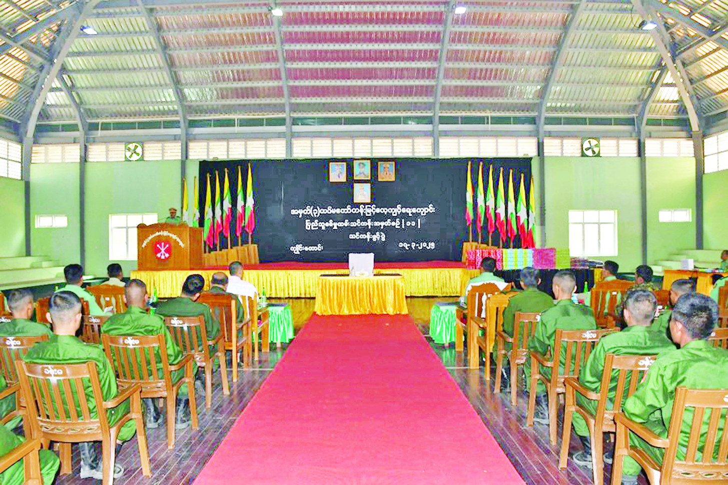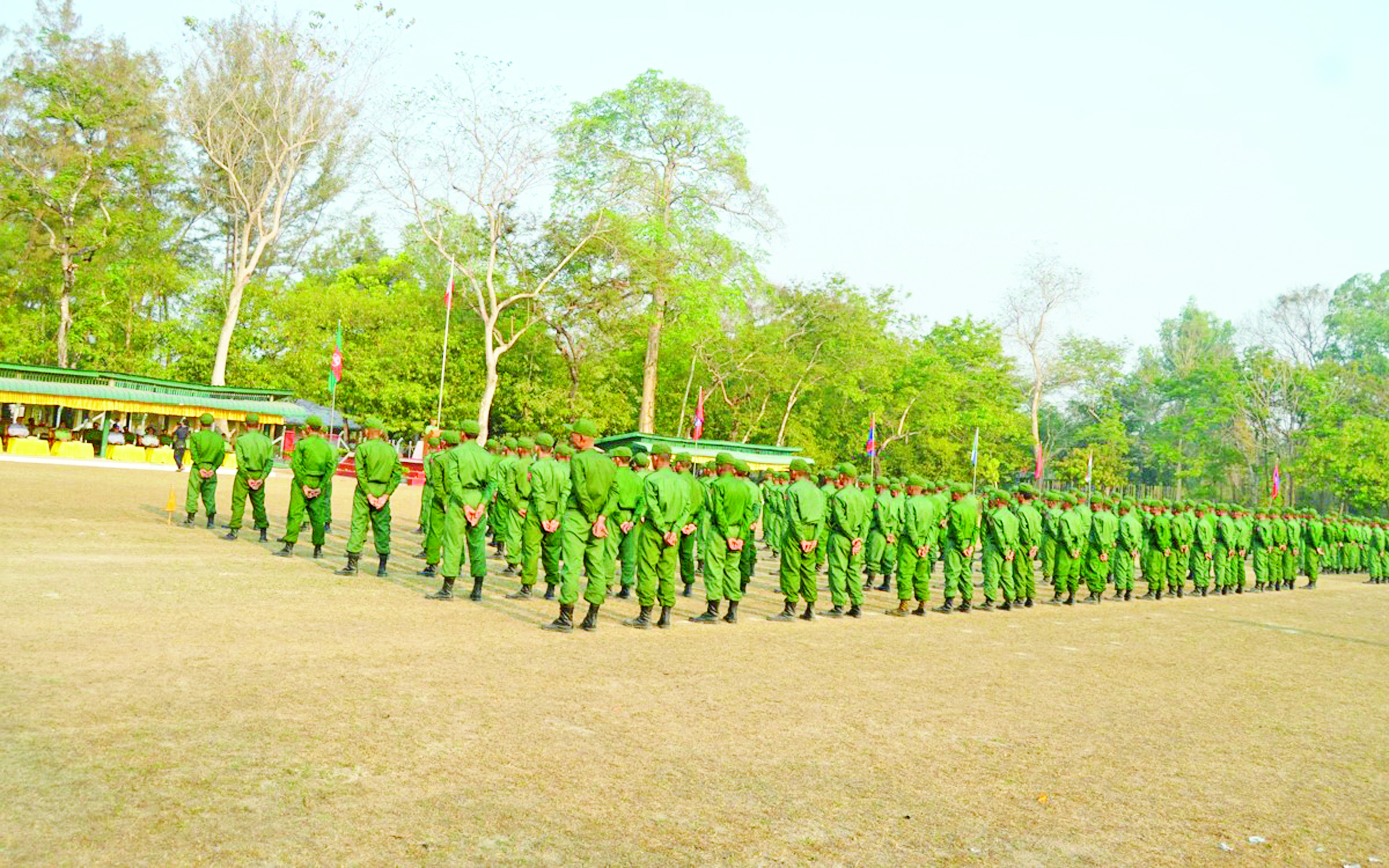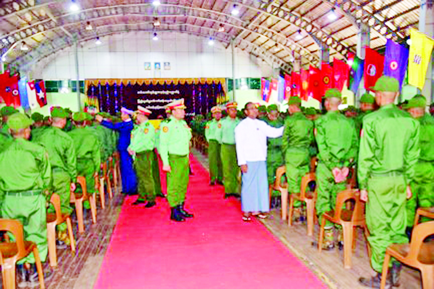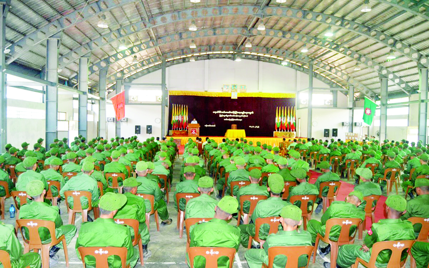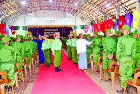 နိုင်ငံတော်ကာကွယ်ရေးနှင့် လုံခြုံရေးတာဝန်ထမ်းဆောင်နိုင်ရန်အတွက် ပြည်သူ့ စစ်မှုထမ်းသင်တန်း အမှတ်စဉ်(၁၁)တွင် ပါဝင်တက်ရောက်ကြမည့် အရည်အချင်း ကိုက်ညီသူ နိုင်ငံ့သားကောင်းများသည် သက်ဆိုင်ရာ တိုင်းစစ်ဌာနချုပ်နယ်မြေများရှိ သင်တန်းကျောင်းများသို့ ရောက်ရှိ၍ လိုအပ်သည့်ကြိုတင်ပြင်ဆင်မှုများကို ဆောင်ရွက်ကြသည်။ ယနေ့နံနက်ပိုင်းတွင် အဆိုပါသင်တန်းကျောင်းများ၌ ပြည်သူ့စစ်မှုထမ်း သင်တန်းအမှတ်စဉ်(၁၁) သင်တန်းဖွင့်ပွဲများ ပြုလုပ်ကြသည်။ သင်တန်းဖွင့်ပွဲများတွင် သင်တန်းကျောင်းများအလိုက် ကျောင်းအုပ်ကြီးများက သင်တန်းဖွင့် အမှာစကားများ ပြောကြားကြသည်။