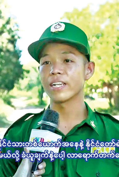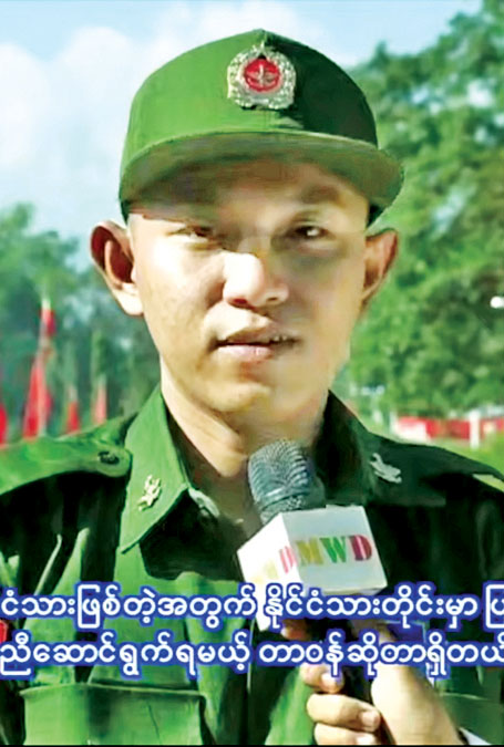 (၂)ကျွန်တော်တို့က နိုင်ငံသားဖြစ်တဲ့အတွက် ပြဋ္ဌာန်းထားတဲ့ ဥပဒေနှင့်အညီ ဆောင်ရွက်ရမယ့် တာဝန်ဆိုတာရှိတယ်။ အဲဒီတော့ ဒီဥပဒေကလည်း ၂၀၂၄ ခုနှစ်မှာ ပြဋ္ဌာန်းထားတယ်။ ဒါကြောင့် ကျွန်တော်လာရောက်တာဝန် ထမ်းဆောင်တာ ဖြစ်ပါတယ်။ ပထမဆုံးပြောရရင် အင်မတန်မှ ဝမ်းသာမိပါတယ်။ ဘာလို့လဲဆိုတော့ ဒီသင်တန်းတွေဟာ အပြင်မှာမဖွင့်ပါဘူး။ ကျွန်တော် တို့ပိုက်ဆံရှိလည်း တက်လို့မရပါဘူး။ စိတ်ဓာတ်ကြံ့ခိုင်ပြီးတော့ စိတ်လည်းတကယ်ပါမှ တက်ရောက်လို့ရမှာပါ။ ဒီသုံးလတက်ရောက်လိုက်တာနဲ့ ကျွန်တော်တို့ အစစအရာရာ အဘက်ဘက် ကနေအကျိုးပြုပြီး ကူညီသွားမှာ ဖြစ်ပါတယ်။ ကျွန်တော်အင်မတန် ဝမ်းသာမိပါတယ်။ ကျွန်တော်တို့တွေ စည်းကမ်းတွေကို လိုက်နာရင်း ယောကျ်ားကောင်းပီသသွားတာပေါ့။ ကျွန်တော်ကိုယ်တိုင်ကလည်း ဆန္ဒနဲ့တစ်ပြေးညီ လာရောက် တက်ရောက်တာဖြစ်တဲ့အတွက် တာဝန်ထမ်းဆောင်ခြင်းမရှိသေးတဲ့ ညီအစ်ကိုတွေ၊ သူငယ်ချင်းတွေကိုလည်း လာတက်ရောက်ဖို့ ဖိတ်ခေါ်ပါတယ်။ အဆင်ပြေသွားမှာပါလို့။ ကျွန်တော်တို့က ယောကျ်ားတွေပါပဲ။ သင်တန်းဆင်းပြီးသွားရင်လည်း ဘယ်တပ်ရင်းကို တာဝန်ကျမလဲတော့ မသိဘူးပေါ့ဗျာ။ ကျွန်တော်ရထားတဲ့ အင်ဂျင်နီယာဘွဲ့နဲ့ အဲဒီတပ်မှာ အကျိုးပြုပြီးတော့ တာဝန်ထမ်းဆောင်သွားမှာ ဖြစ်ပါတယ်ခင်ဗျာ။