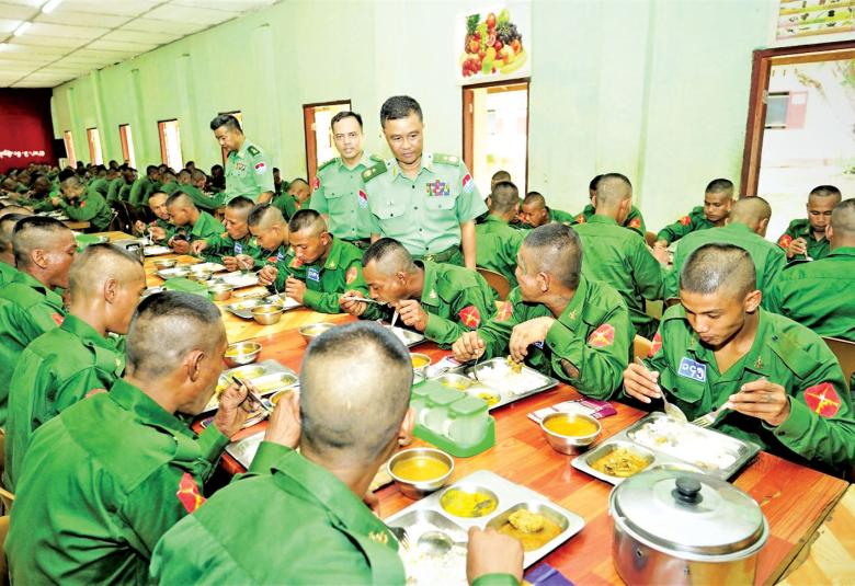 ၁။ ပြည်သူ့စစ်မှုထမ်းကို လာရောက်တာဝန် ထမ်းဆောင်ရတဲ့ ရည်ရွယ်ချက်ကတော့ ကျွန်တော့်ရဲ့ ဆန္ဒပါ၊ အိမ်ကမိဘဆွေမျိုးတွေရဲ့ ဆန္ဒပါလို့ တာဝန်ထမ်းဆောင်တာလည်း ဖြစ်ပါတယ်။ ဒီအပတ်စဉ် (၁၇) ပြည်သူ့စစ်မှုထမ်းကို တာဝန် ကျေကျေနဲ့ပဲ ထမ်းဆောင်သွားပါမယ်။ ထမ်းဆောင်ရတဲ့ ရည်ရွယ်ချက်ကတော့ ကျွန်တော်တို့ရဲ့ ပြည်သူတွေကို စောင့်ရှောက်ချင်တဲ့ ရည်ရွယ်ချက် ဖြစ်ပါတယ်။ နှစ်နှစ် တာဝန်ထမ်းဆောင်ရမယ်ဆိုတဲ့  ကာလကို တာဝန်ကျေကျေ လေးလေးနက်နက် ရိုရိုသေသေ လေးလေးစားစားနဲ့ တာဝန်ထမ်းဆောင် သွားပါမယ်လို့ ပြောချင်ပါတယ်။