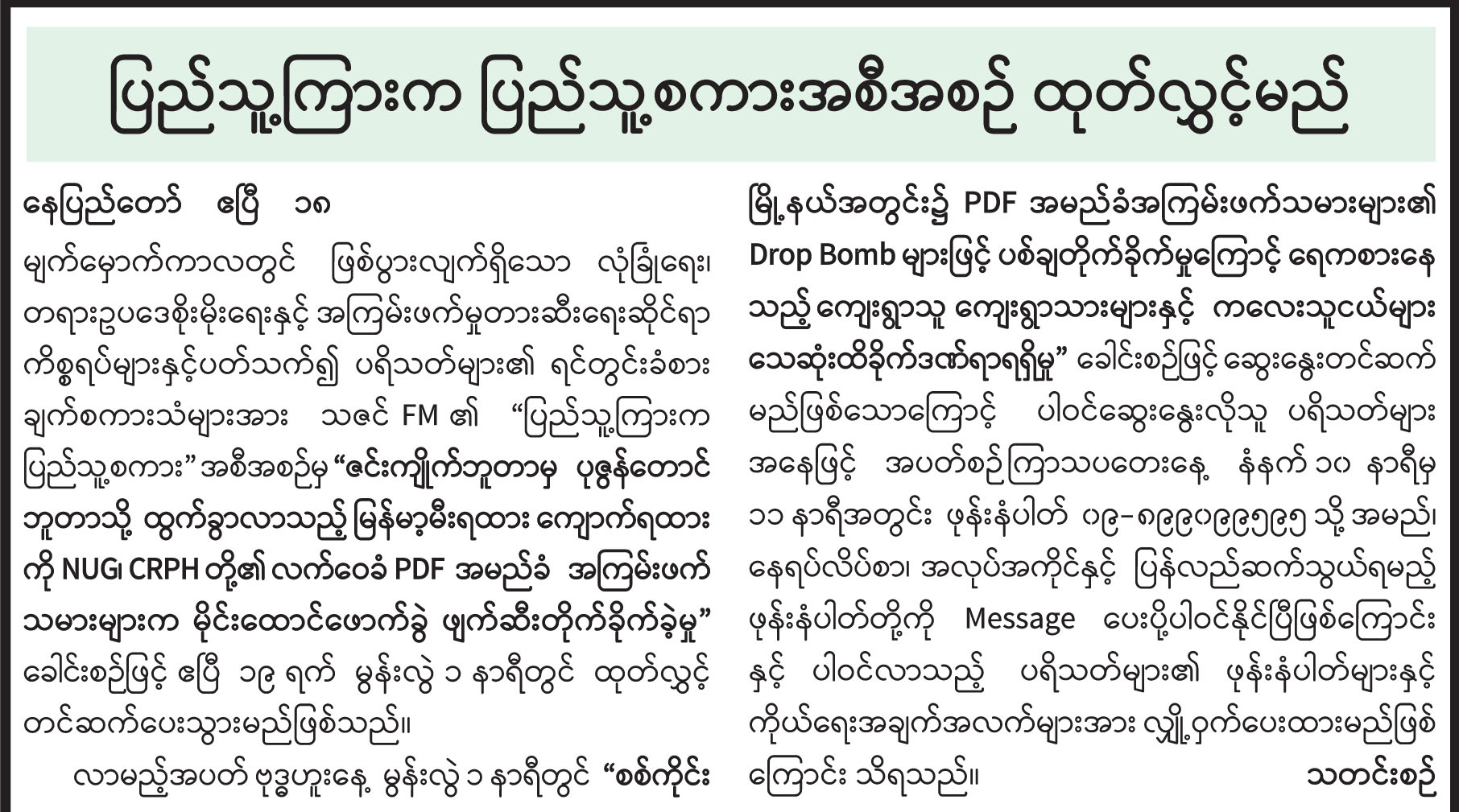 ပြည်သူ့ကြားက ပြည်သူ့စကားအစီအစဉ် ထုတ်လွှင့်မည်
