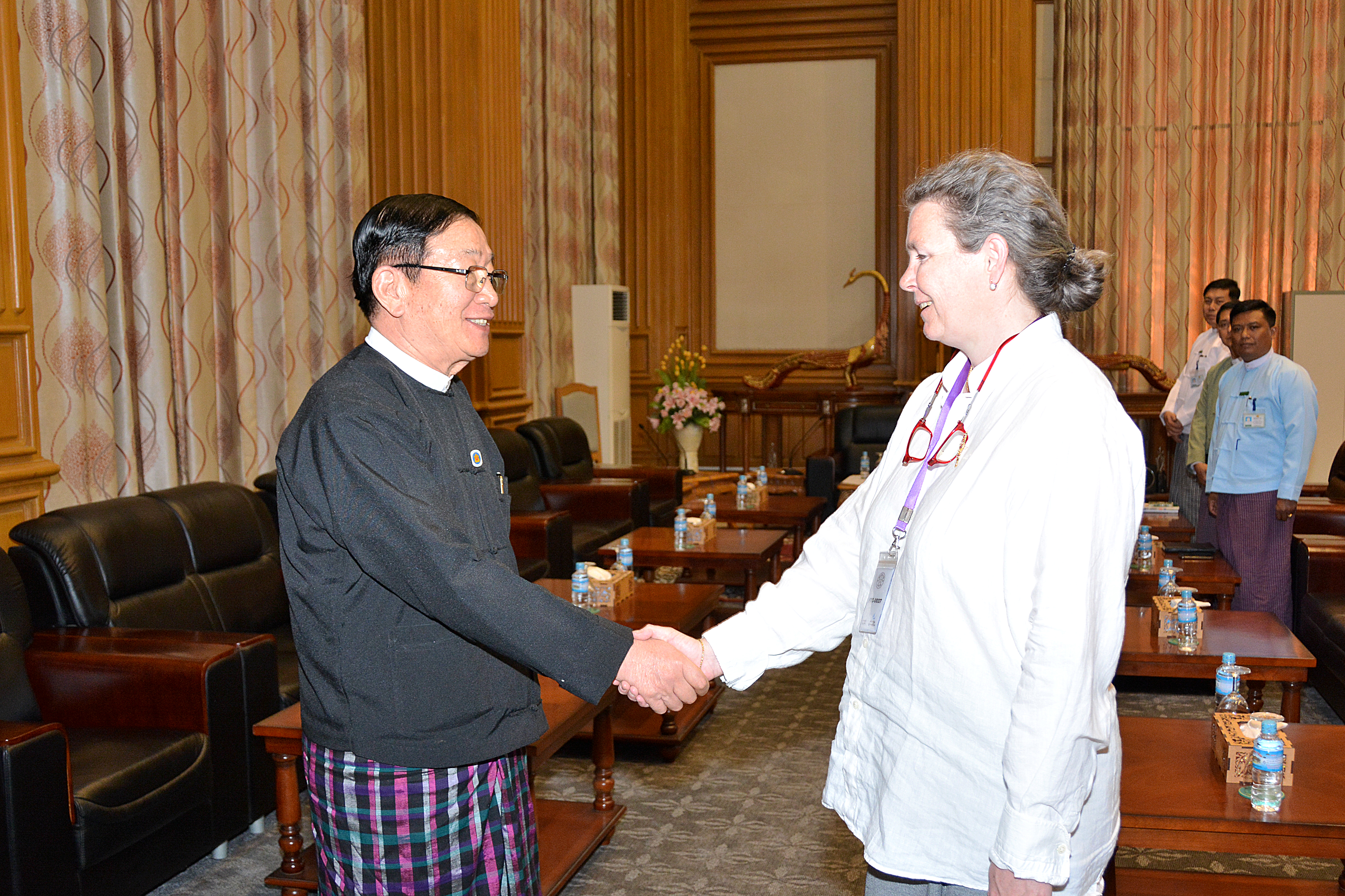 ပြည်သူ့လွှတ်တော်ဥက္ကဋ္ဌ ဦးတီခွန်မြတ်သည် Inter- Parliamentary Union (IPU)၏ နည်းပညာ ပူးပေါင်းဆောင်ရွက်မှု အစီအစဉ်မန်နေဂျာ Ms. Norah Babic အားယနေ့ မွန်းလွဲ ၂ နာရီတွင် နေပြည်တော်ရှိ လွှတ်တော်အဆောက်အအုံ၊ ပြည်သူ့လွှတ်တော်ဆောင် ဧည့်ခန်းမ၌ လက်ခံတွေ့ဆုံသည်။