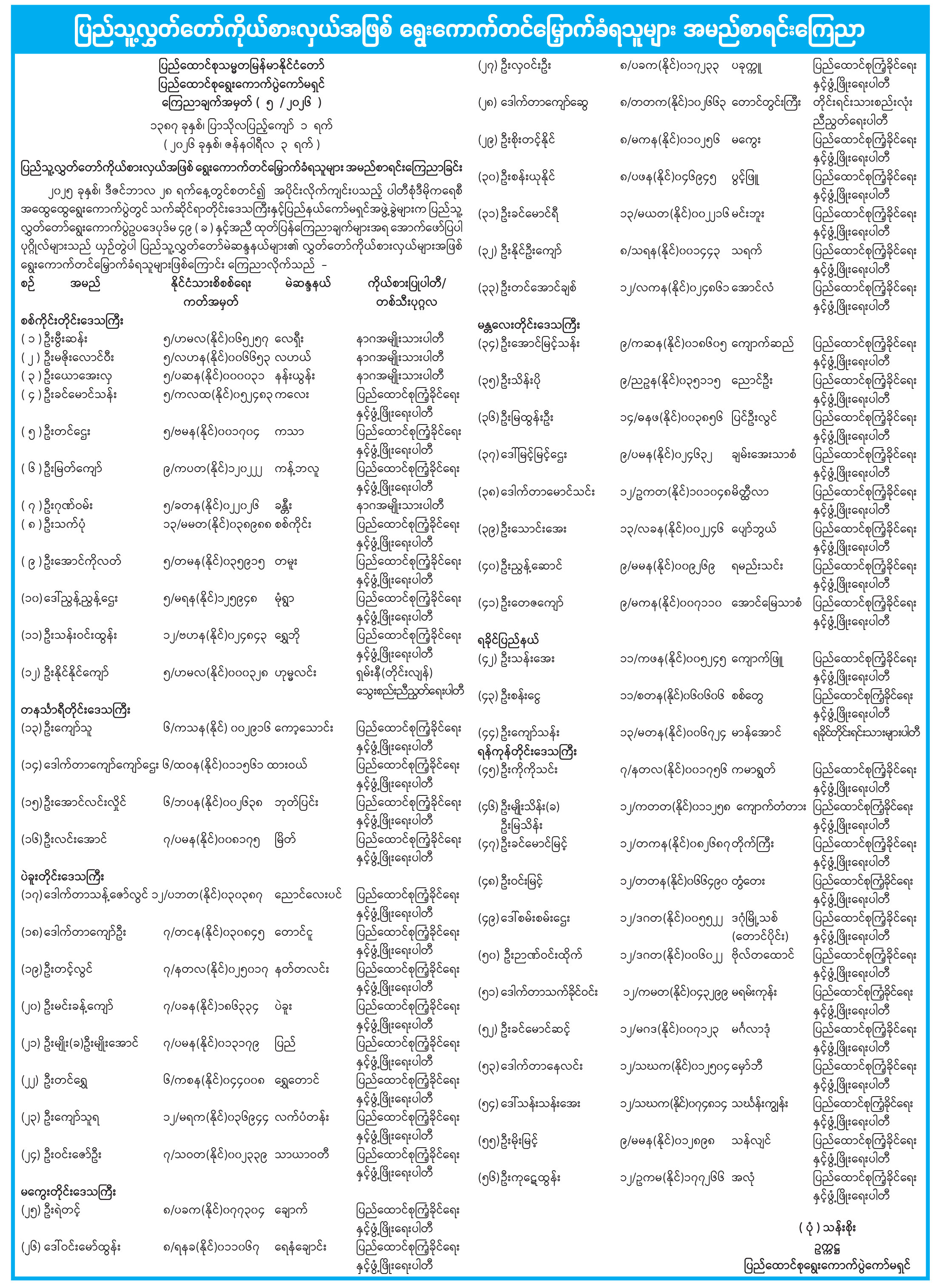 ပြည်သူ့လွှတ်တော်ကိုယ်စားလှယ်အဖြစ် ရွေးကောက်တင်မြှောက်ခံရသူများ အမည်စာရင်းကြေညာ