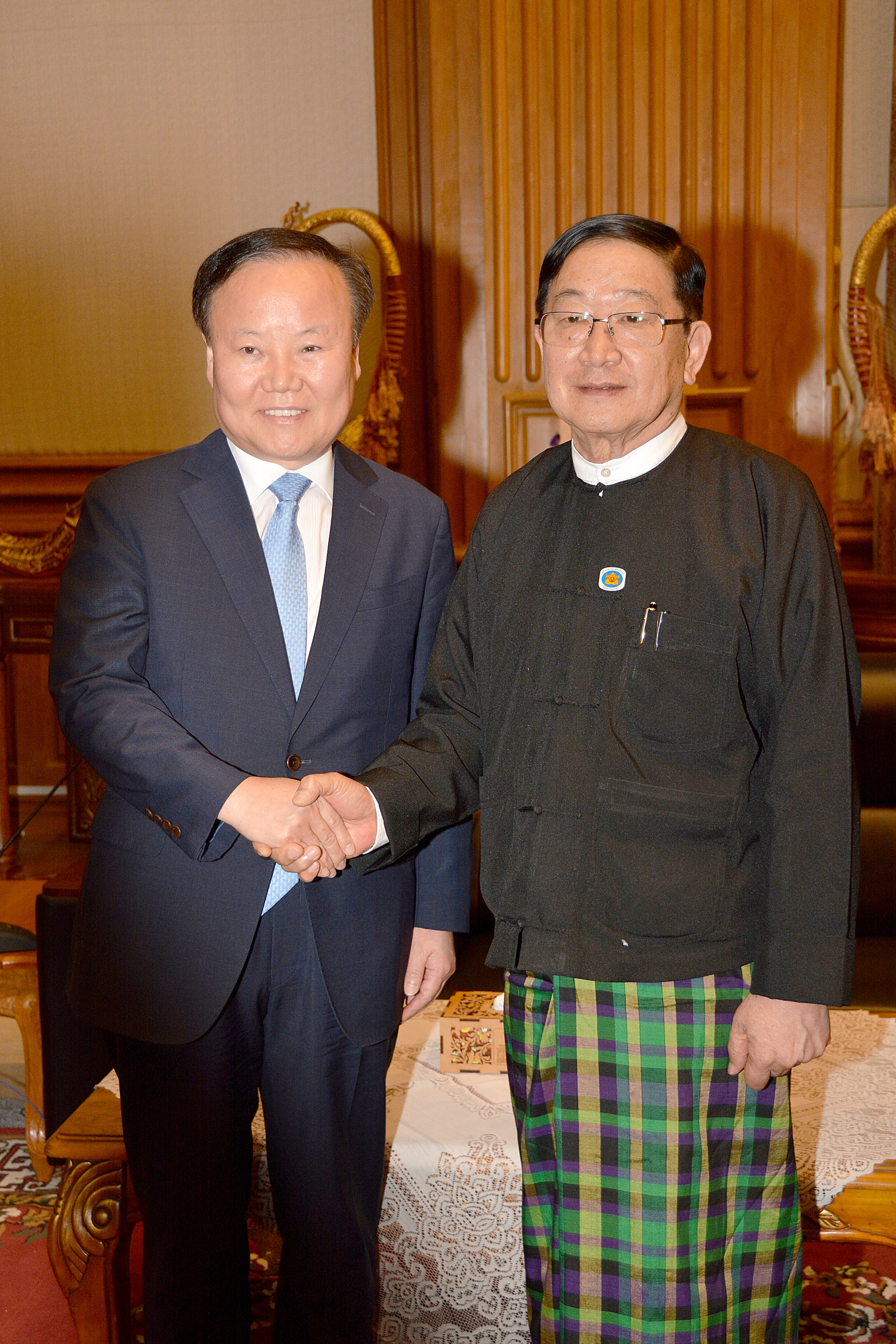 ပြည်သူ့လွှတ်တော်ဥက္ကဋ္ဌ ဦးတီခွန်မြတ်သည် ကိုရီးယား-မြန်မာ လွှတ်တော်များအကြား ချစ်ကြည်ရေးအသင်းဥက္ကဋ္ဌ H.E. Mr. Kim Jaewon အား ယနေ့မွန်းလွဲ ၃ နာရီတွင် နေပြည်တော်ရှိ လွှတ်တော်အဆောက်အအုံ၊ ပြည်သူ့လွှတ်တော်ဆောင် ဧည့်ခန်းမ၌ လက်ခံတွေ့ဆုံသည်။