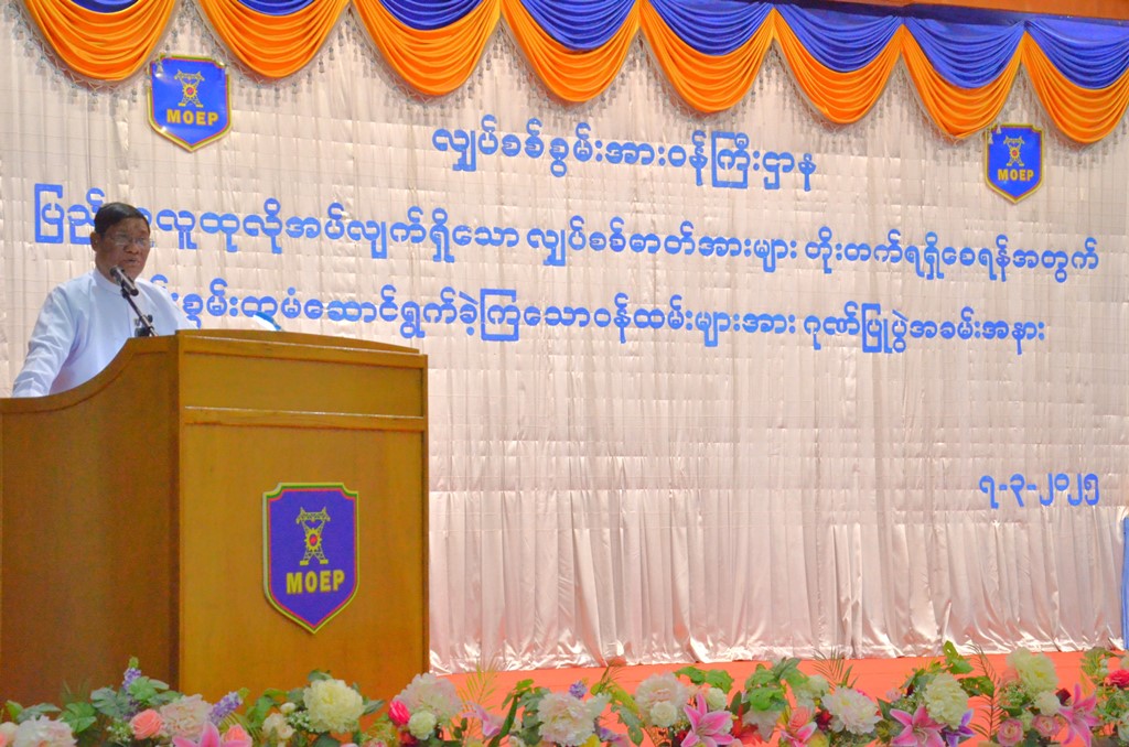 ဦးစွာ ပြည်ထောင်စုဝန်ကြီးက လျှပ်စစ်ဓာတ်အားပို့လွှတ်ရေးနှင့် ကွပ်ကဲရေးဦးစီးဌာနက တာဝန်ယူထိန်းသိမ်းရသည့် ဓာတ်အားလိုင်းသည် ၂၀၂၄ ခုနှစ်၊ ဇွန် ၂၆ ရက်တွင် တာဝါတိုင် (၁) တိုင် ပျက်စီးခဲ့ခြင်းနှင့် ဓာတ်အားလိုင်းကြိုး (၂၆) နေရာပြတ်ကျခဲ့ခြင်းများဖြစ်ပွားခဲ့ပြီး ဓာတ်အားပြတ်တောက်ခဲ့ရာ ၎င်းပျက်စီးမှုကြောင့် ရေအားလျှပ်စစ်ဓာတ်အားပေးစက်ရုံမှ စက်တပ်ဆင်ဝန်အား ၄၀၀ မဂ္ဂါဝပ် ထုတ်လုပ်မှုမှာ လျော့နည်းခဲ့၍ နိုင်ငံတော်အနေဖြင့် ပြည်သူလူထုကို ဓာတ်အားဖြန့်ဖြူးပေးနိုင်မှု လျော့နည်းခဲ့ရပါကြောင်း၊ ဓာတ်အားလိုင်းပြုပြင်နိုင်ရေးအတွက် ဝန်ကြီးဌာန၏ ဦးဆောင်တာဝန်ပေးအပ်မှုကြောင့် လျှပ်စစ်ဓာတ်အားပို့လွှတ်ရေးနှင့် ကွပ်ကဲရေးဦးစီးဌာနမှ ဓာတ်အားလိုင်းပြုပြင်ရေး အဖွဲ့များသည် ၂၀၂၄ ခုနှစ်၊ နိုဝင်ဘာ ၂၄ ရက်တွင် ဓာတ်အားလိုင်း ပြန်လည်ပြုပြင်ခြင်းလုပ်ငန်းများကို စတင်ဆောင်ရွက်ခဲ့ရာ ၃ လခန့်ကြာသည်အထိ ပြုပြင်ရေးလုပ်ငန်းများကို ဝန်ထမ်းအင်အား (၆၈) ဦးဖြင့် သက်စွန့်ကြိုးပမ်းဆောင်ရွက်ခဲ့ရပါကြောင်း၊ နိုင်ငံတော်အတွင်း ဓာတ်အားလိုင်းများ ဖျက်ဆီးခံရမှုကြောင့်လည်းကောင်း၊ ရာဂီသဘာဝဘေး အန္တရာယ်ကြောင့် ဓာတ်အားပေးစက်ရုံများ ချို့ယွင်းမှုကြောင့်လည်းကောင်း၊ ဓာတ်ငွေ့လျော့နည်းရရှိမှုကြောင့်လည်းကောင်း၊ ဓာတ်အားစနစ်တွင် ဓာတ်အားထုတ်လုပ်မှု စုစုပေါင်း ၁၄၄၀ မဂ္ဂါဝပ် လျော့နည်းကာ ပြည်သူလူထုကို ဓာတ်အားဖြန့်ဖြူးပေးနိုင်မှု လျော့နည်းနေချိန်တွင် အဆိုပါဝန်ထမ်းများသည် သက်စွန့်ဆံဖျား ပင်ပန်းဆင်းရဲခံ၍ ပြုပြင်ရေးလုပ်ငန်းများကို (၃) လတာ ကာလအတွင်း အန္တရာယ်များကြားမှ ဆောင်ရွက်ခဲ့ခြင်းကြောင့် ရေအားလျှပ်စစ်ဓာတ်အားပေးစက်ရုံ၏ စက်တပ်ဆင်ဝန်အား (၄၀၀) မဂ္ဂါဝပ်ကို နိုင်ငံတော်ဓာတ်အားစနစ်အတွင်းသို့ ပြန်လည်ထုတ်လုပ်/ ပို့လွှတ်နိုင်ခဲ့ခြင်းဖြစ်ပါကြောင်း၊ ဓာတ်အားလိုင်းနှင့် ပင်မဓာတ်အားခွဲရုံ ပြုပြင်ခဲ့ခြင်းလုပ်ငန်းများတွင် စွမ်းစွမ်းတမံ သက်စွန့်ကြိုးပမ်း သွားရောက်ဆောင်ရွက်ခဲ့ကြသည့် ဝန်ထမ်းများအားလုံးနည်းတူ ဌာနချုပ်များမှ လိုအပ်သည်များကို အချိန်နှင့်တစ်ပြေးညီ ပံ့ပိုးဆောင်ရွက်ခဲ့ရသည့် ဝန်ထမ်းများအားလုံးကိုလည်း အထူးပင်ကျေးဇူးတင်ရှိပါကြောင်းနှင့် လုပ်ငန်းခွင်မတော်တဆမှုကြောင့် အသက်ဆုံးရှုံးခဲ့ရသည့် လိုင်းဝန်ထမ်းကိုလည်း ဂုဏ်ပြုမှတ်တမ်းတင်ပါကြောင်း ပြောကြားသည်။