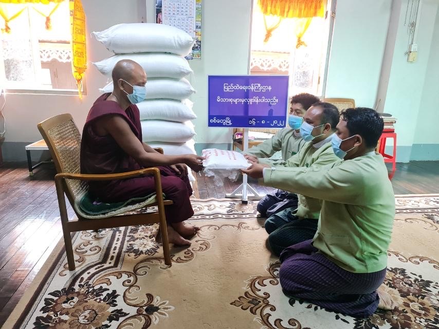 ပြည်ထဲရေးဝန်ကြီးဌာန၊ တပ်ဖွဲ့ဝင်/ဝန်ထမ်း အရာထမ်း၊ အမှုထမ်းမိသားစုများက မြို့နယ် အသီးသီးရှိ ဘုန်းတော်ကြီးကျောင်းများသို့ ဆွမ်းဆန်တော်များ ဆက်ကပ်လှူဒါန်းလျက်ရှိသည်။