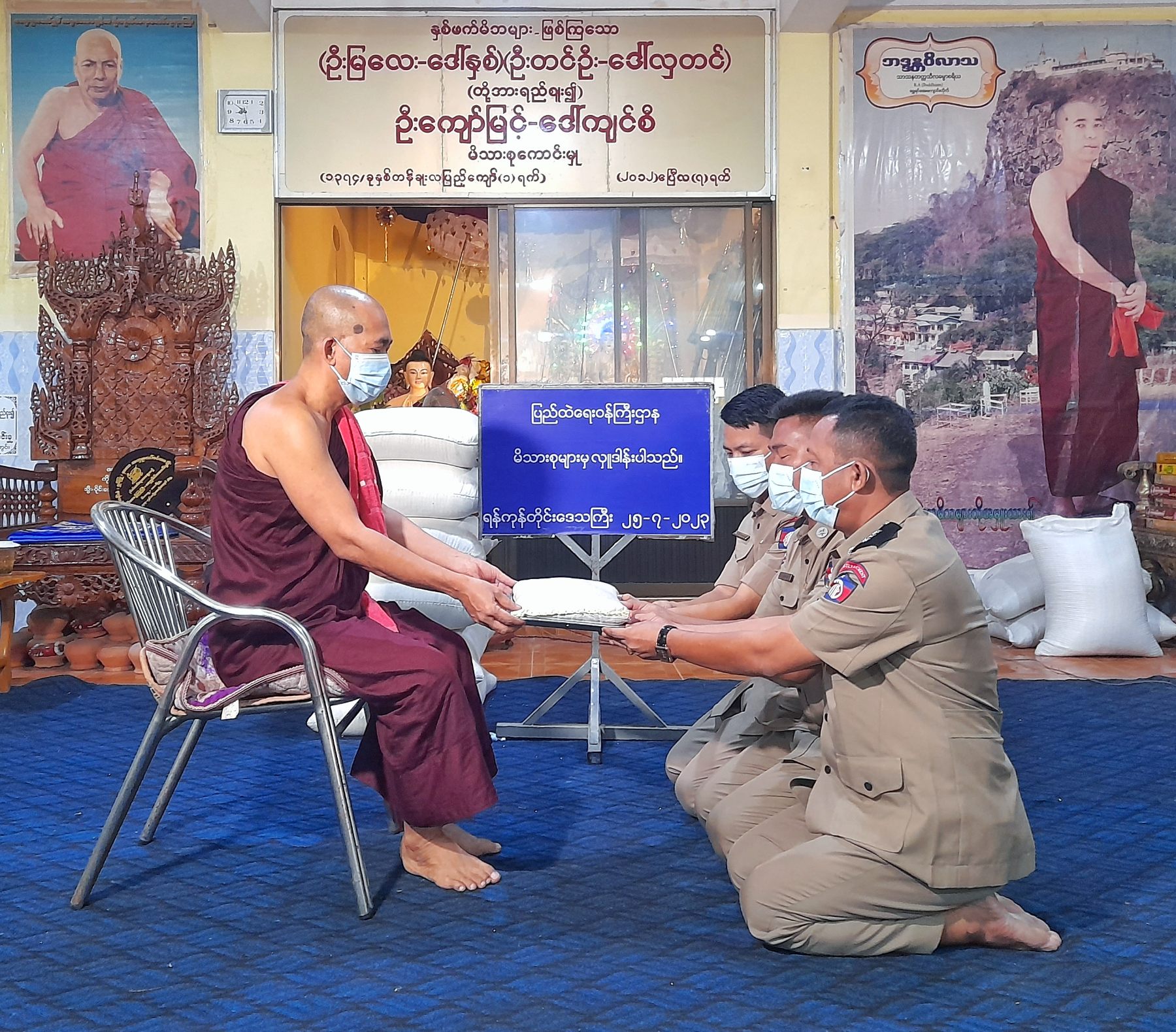 ပြည်ထဲရေးဝန်ကြီးဌာန၊ တပ်ဖွဲ့ဝင်/ဝန်ထမ်း အရာထမ်း၊ အမှုထမ်းမိသားစုများမြို့နယ် အသီးသီးရှိ ဘုန်းတော်ကြီးကျောင်းများသို့ ဆွမ်းဆန်တော်နှင့် ဆန်ကြာဆံများဆက်ကပ်လှူဒါန်း လျက်ရှိသည်။