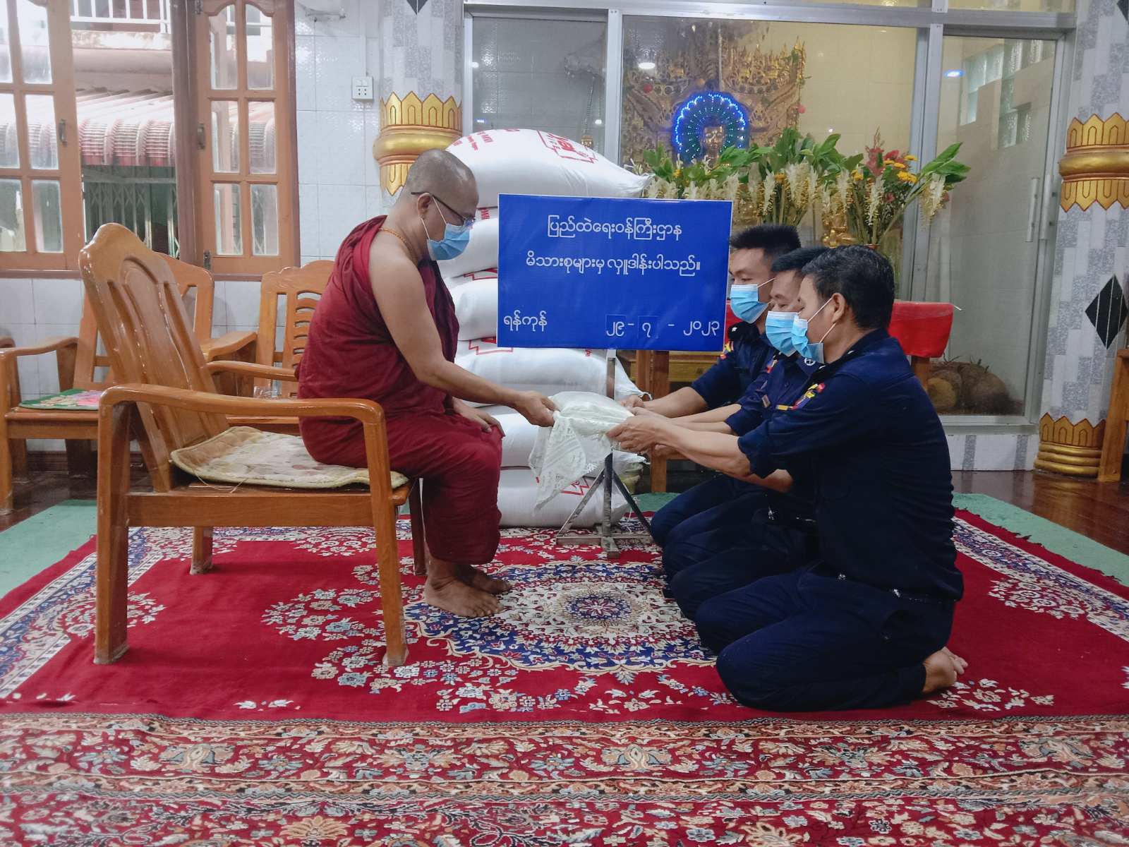 ပြည်ထဲရေးဝန်ကြီးဌာန တပ်ဖွဲ့ဝင်/ ဝန်ထမ်း အရာထမ်း၊ အမှုထမ်း မိသားစုများသည် မြို့နယ်အသီးသီးရှိ ဘုန်းတော်ကြီးကျောင်းများသို့ ဆွမ်းဆန်တော်နှင့် ဆန်ကြာဆံများ ဆက်ကပ်လှူဒါန်းလျက်ရှိသည်။