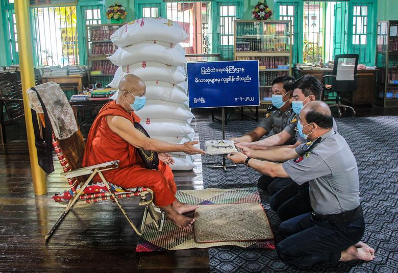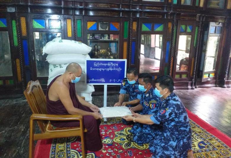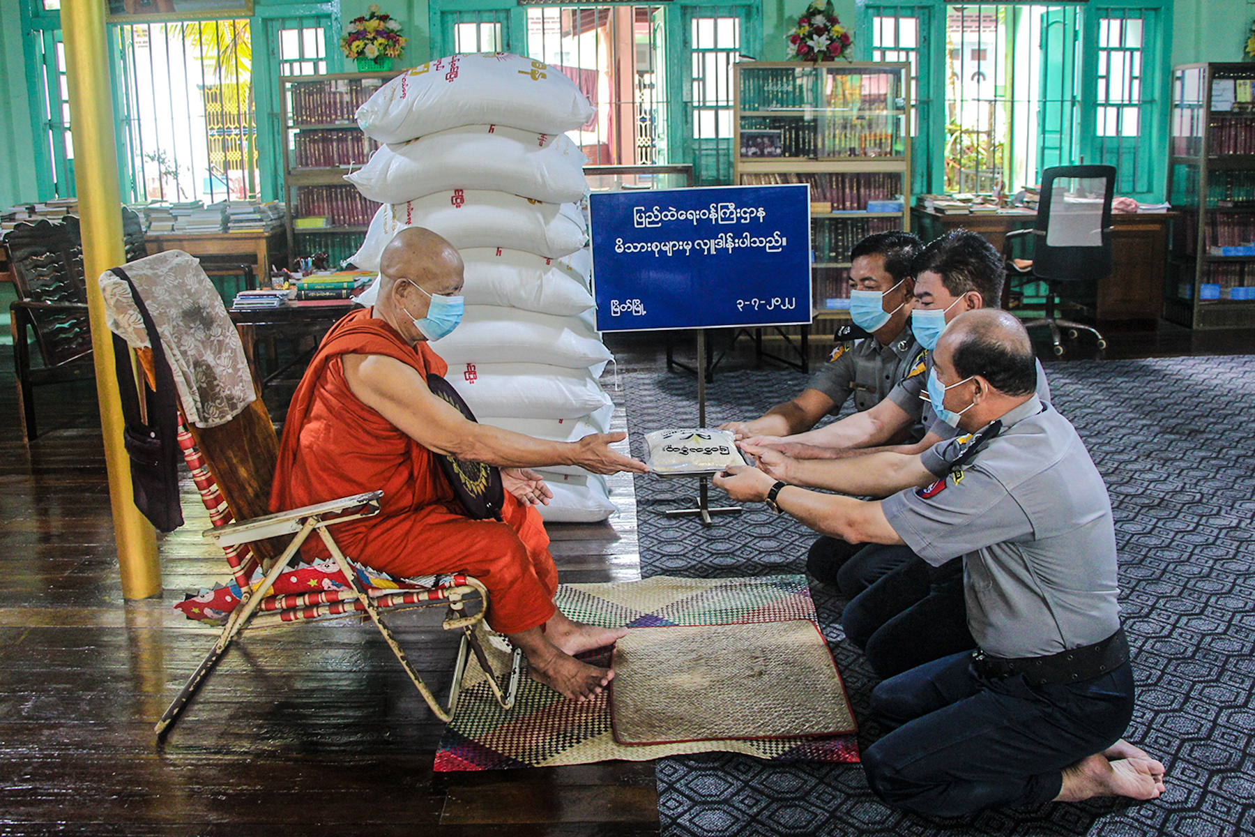 ကိုဗစ်- ၁၉ ရောဂါကြိုတင်ကာကွယ်ရေးလုပ်ငန်းများ ဆောင်ရွက်နေသည့် ကာလအတွင်း ဆွမ်းကိစ္စရပ်များ အဆင်ပြေစေရန် ရည်ရွယ်၍ ပြည်ထဲရေးဝန်ကြီးဌာန၊ တပ်ဖွဲ့ဝင်/ဝန်ထမ်း အရာထမ်း၊ အမှုထမ်းမိသားစုများက မြို့နယ်အသီးသီးရှိ ဘုန်းတော်ကြီးကျောင်းများသို့ ဆွမ်းဆန်တော်များ ဆက်ကပ် လှူဒါန်းလျက်ရှိသည်။