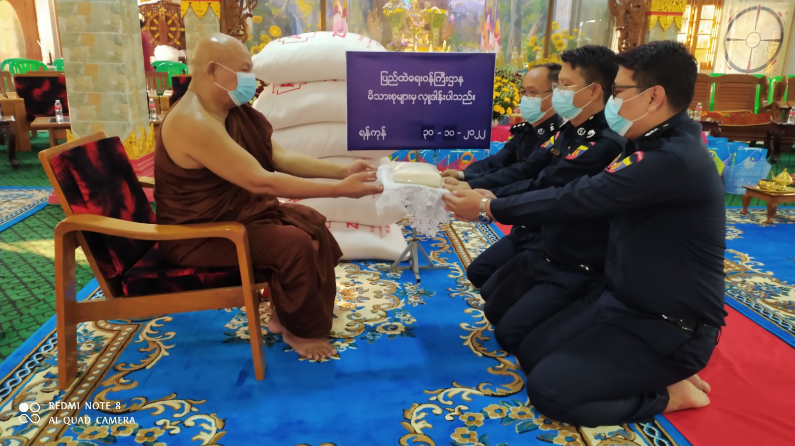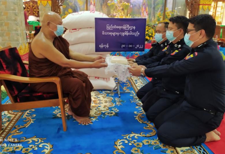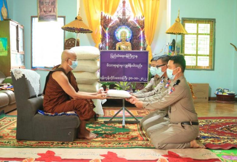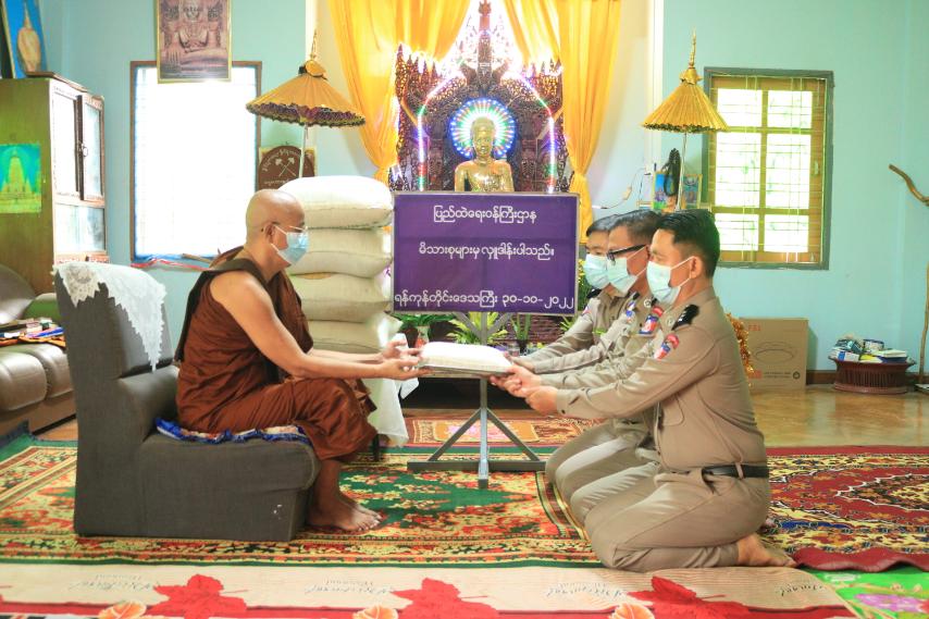 ပြည်ထဲရေးဝန်ကြီးဌာန၊ တပ်ဖွဲ့ဝင်/ဝန်ထမ်း အရာထမ်း၊ အမှုထမ်းမိသားစုများက မြို့နယ်အသီးသီးရှိ ဘုန်းတော်ကြီးကျောင်းများသို့ ဆွမ်းဆန်တော်နှင့် ဆန်ကြာဆံများ ဆက်ကပ်လှူဒါန်းလျက် ရှိသည်။