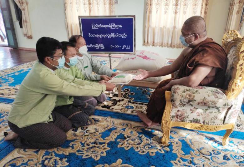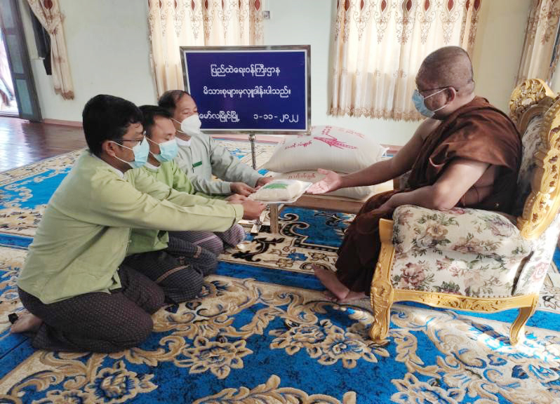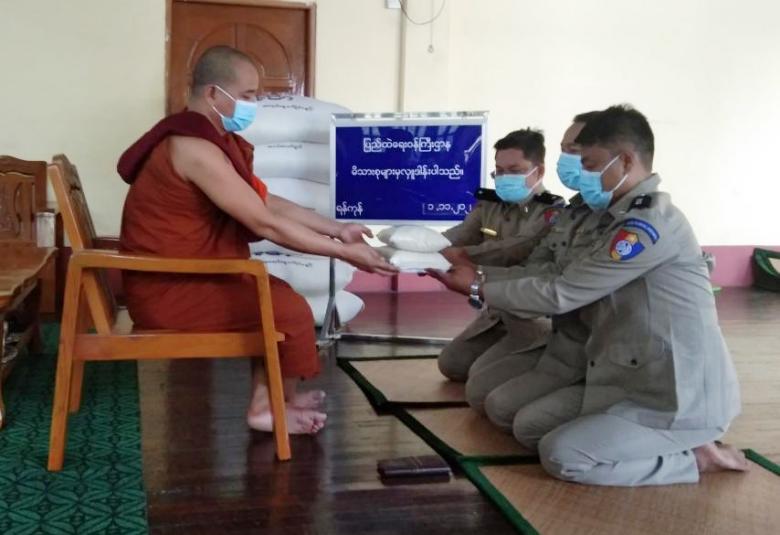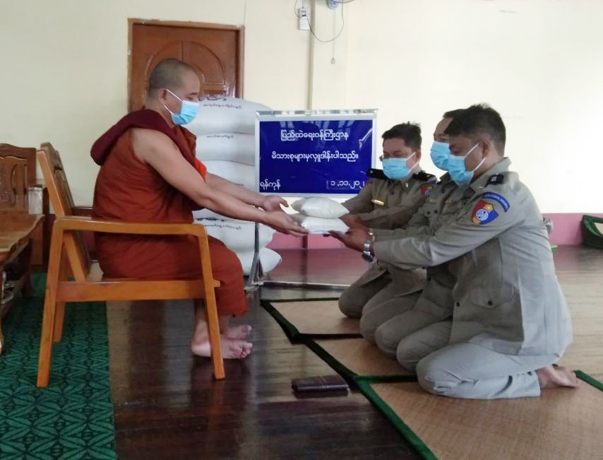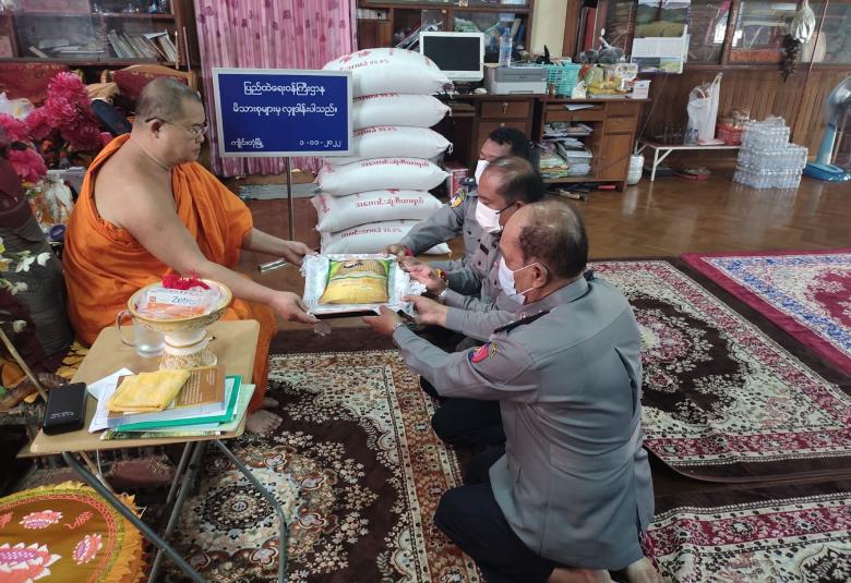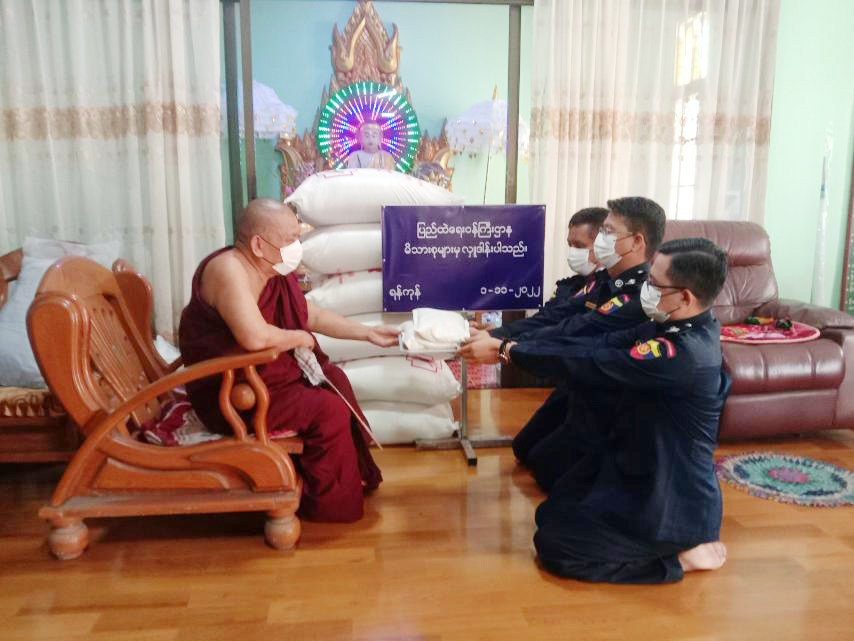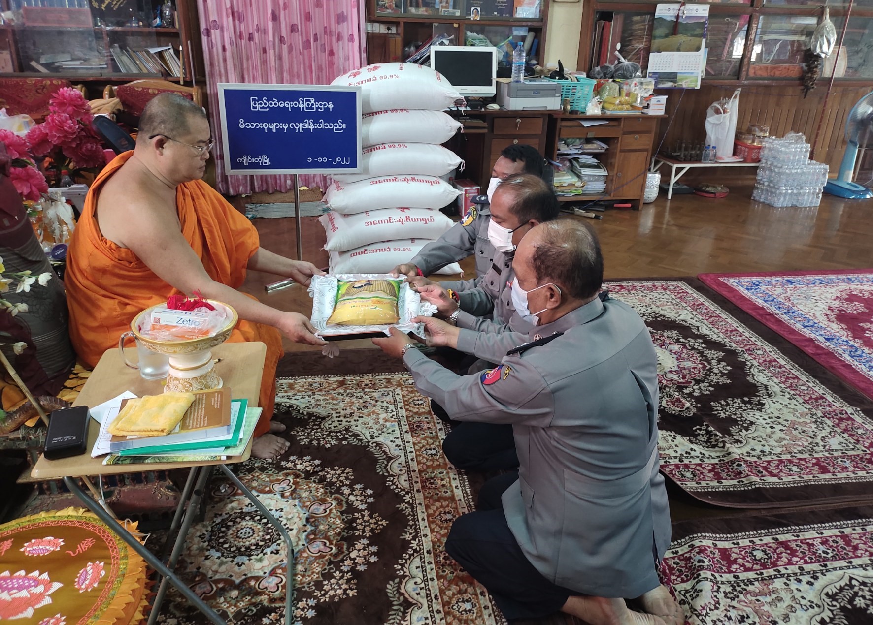 ပြည်ထဲရေးဝန်ကြီးဌာန၊ တပ်ဖွဲ့ဝင်/ဝန်ထမ်း အရာထမ်း၊ အမှုထမ်းမိသားစုများက မြို့နယ်အသီးသီးရှိ ဘုန်းတော်ကြီးကျောင်းများသို့ ဆွမ်းဆန်တော်နှင့် ဆန်ကြာဆံများ ဆက်ကပ်လှူဒါန်းလျက်ရှိသည်။