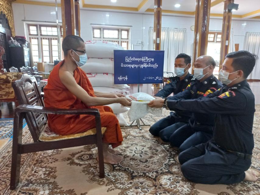 ပြည်ထဲရေးဝန်ကြီးဌာန၊ တပ်ဖွဲ့ဝင်/ဝန်ထမ်း အရာထမ်း၊ အမှုထမ်းမိသားစုများက မြို့နယ် အသီးသီးရှိ ဘုန်းတော်ကြီးကျောင်းများသို့ ဆွမ်းဆန်တော်နှင့် ဆန်ကြာဆံများ ဆက်ကပ် လှူဒါန်းခြင်းကို ဆောင်ရွက်လျက်ရှိသည်။