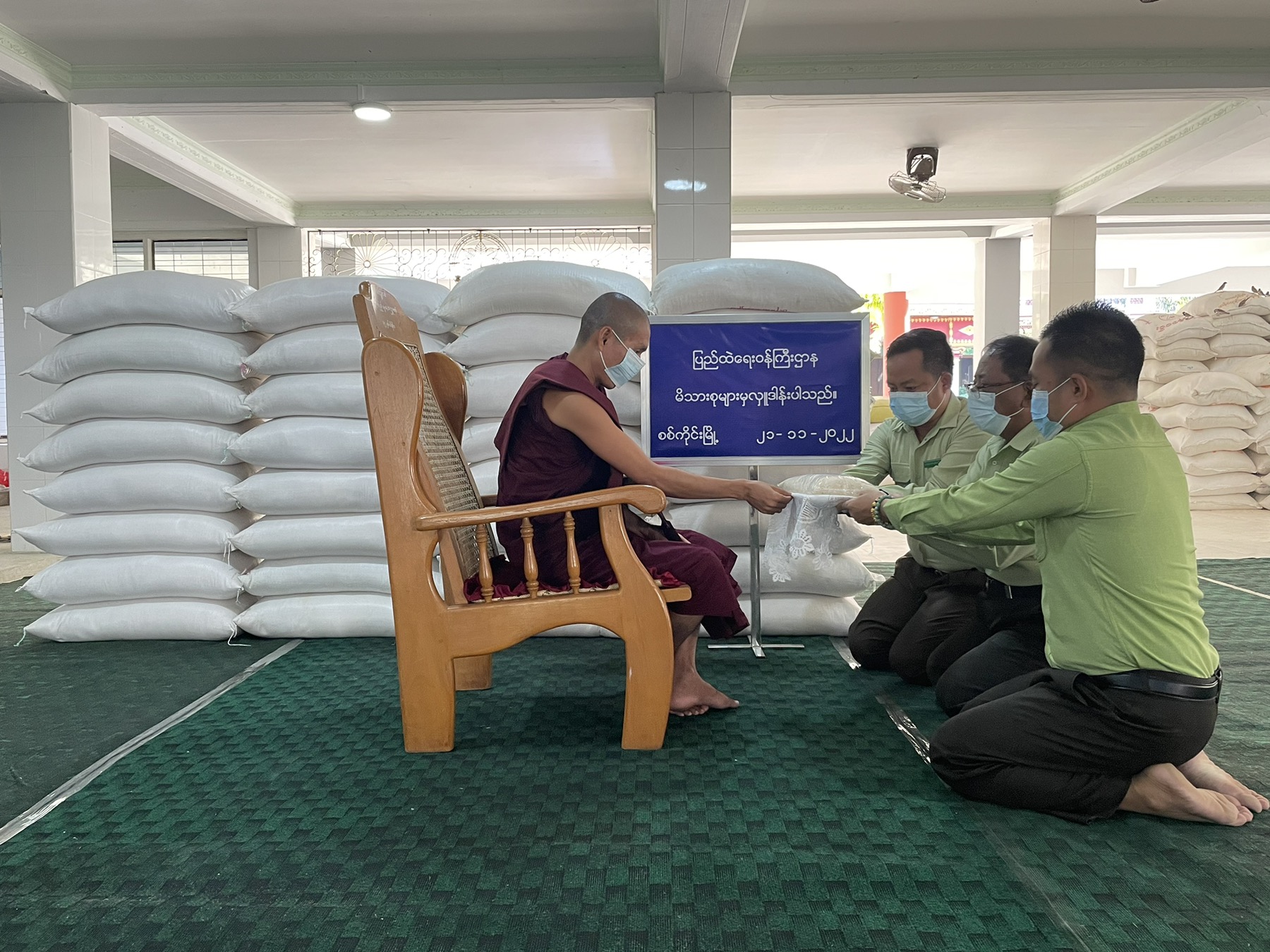 ထိုသို့ ဆောင်ရွက်လျက်ရှိရာ ယနေ့တွင် နေပြည်တော်ကောင်စီနယ်မြေ၊ ပုဗ္ဗသီရိမြို့နယ်ရှိ မရှိခဏဓမ္မရောင်ခြည်ကျောင်းတိုက်၊ စစ်ကိုင်းတိုင်းဒေသကြီး၊ စစ်ကိုင်းမြို့နယ်ရှိ မဟာသုဗောဓာရုံ ပရိယတ္တိစာသင်တိုက်၊ မွန်ပြည်နယ်၊ မော်လမြိုင်မြို့နယ်ရှိ ဓာတုမာလာပရိယတ္တိစာသင်တိုက်၊ ရန်ကုန် တိုင်းဒေသကြီး၊ ဒဂုံမြို့သစ်(မြောက်ပိုင်း)မြို့နယ်ရှိ မစိုးရိမ်ကျောင်းတိုက်၊ မင်္ဂလာဒုံမြို့နယ်ရှိ တိပိဋက စိန်ရွှေဖူးကျောင်းတိုက်၊ မရမ်းကုန်းမြို့နယ်ရှိ ပညာသိပ္ပံကျောင်းတိုက်နှင့် ရွှေပြည်သာမြို့ နယ်ရှိ ပညာပါရမီကျောင်းတိုက်၊ ရှမ်းပြည်နယ်၊ ကျိုင်းတုံမြို့နယ်ရှိ ကျိုင်းလိတ်ကျောင်းတိုက်တို့သို့ ဆွမ်းဆန်တော် များကိုလည်းကောင်း၊ ကချင်ပြည်နယ်၊ မြစ်ကြီးနားမြို့နယ်ရှိ ကျောင်းထိုင်ဘုန်းကြီး သင်တန်းကျောင်း၊ စစ်ကိုင်းတိုင်းဒေသကြီး၊ မုံရွာမြို့နယ်ရှိ ပဇ္ဇောတာရုံကျောင်းတိုက်၊ မကွေးတိုင်း ဒေသကြီး၊ မကွေးမြို့နယ်ရှိ မြဇေယျုံကျောင်းတိုက်၊ မန္တလေးတိုင်းဒေသကြီး၊ အမရပူရမြို့နယ်ရှိ ရွှေကူကြီးကျောင်းတိုက်နှင့် အောင်မြေသာစံမြို့နယ်ရှိ ဣန္ဒြိယာရာမရွှေဂူကျောင်းတိုက်၊ ဧရာဝတီ တိုင်းဒေသကြီး၊ ပုသိမ်မြို့နယ်ရှိ မဟာရံသီပရိယတ္တိစာသင်တိုက်တို့သို့ ဆန်ကြာဆံများကို လည်းကောင်း ဆရာတော်၊ သံဃာတော်များအတွက် တာဝန်ရှိသူများက သွားရောက်ဆက်ကပ် လှူဒါန်းခဲ့ကြကြောင်း သိရသည်။