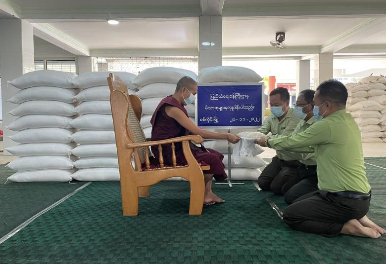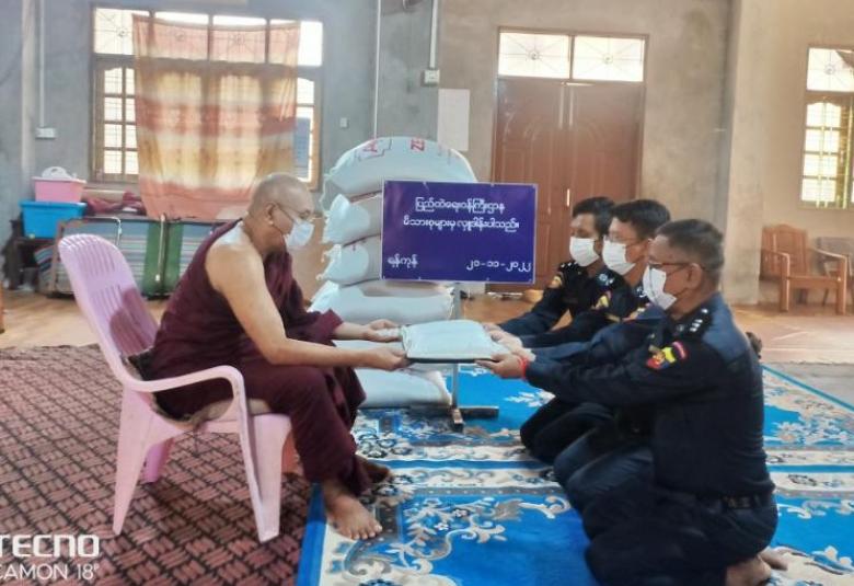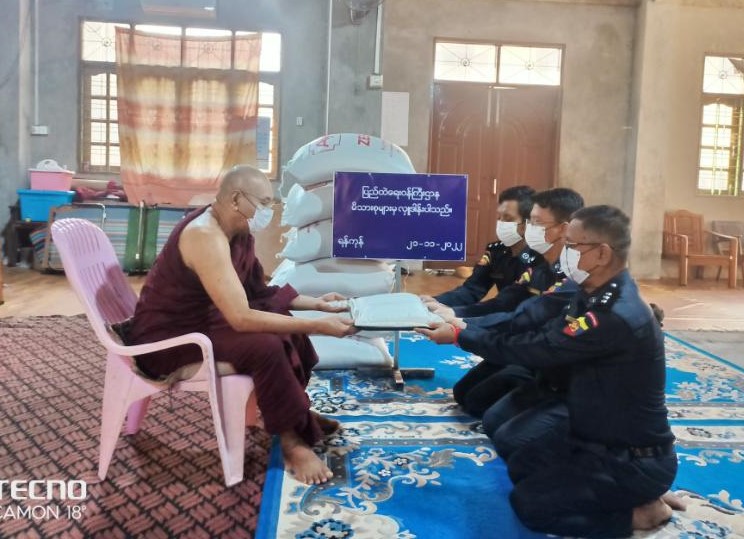 ပြည်ထဲရေးဝန်ကြီးဌာန၊ တပ်ဖွဲ့ဝင်/ဝန်ထမ်း အရာထမ်း၊ အမှုထမ်းမိသားစုများက မြို့နယ် အသီးသီးရှိ ဘုန်းတော်ကြီးကျောင်းများသို့ ဆွမ်းဆန်တော်နှင့် ဆန်ကြာဆံများ ဆက်ကပ်လှူဒါန်း လျက်ရှိသည်။