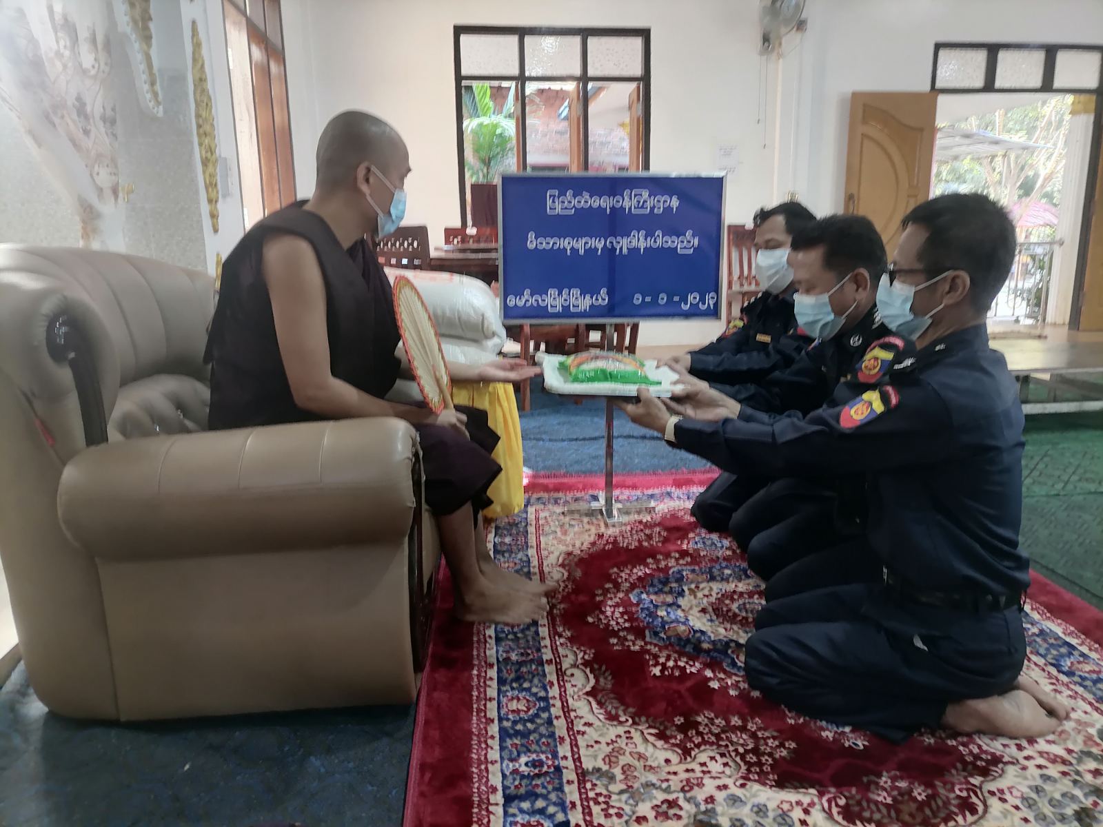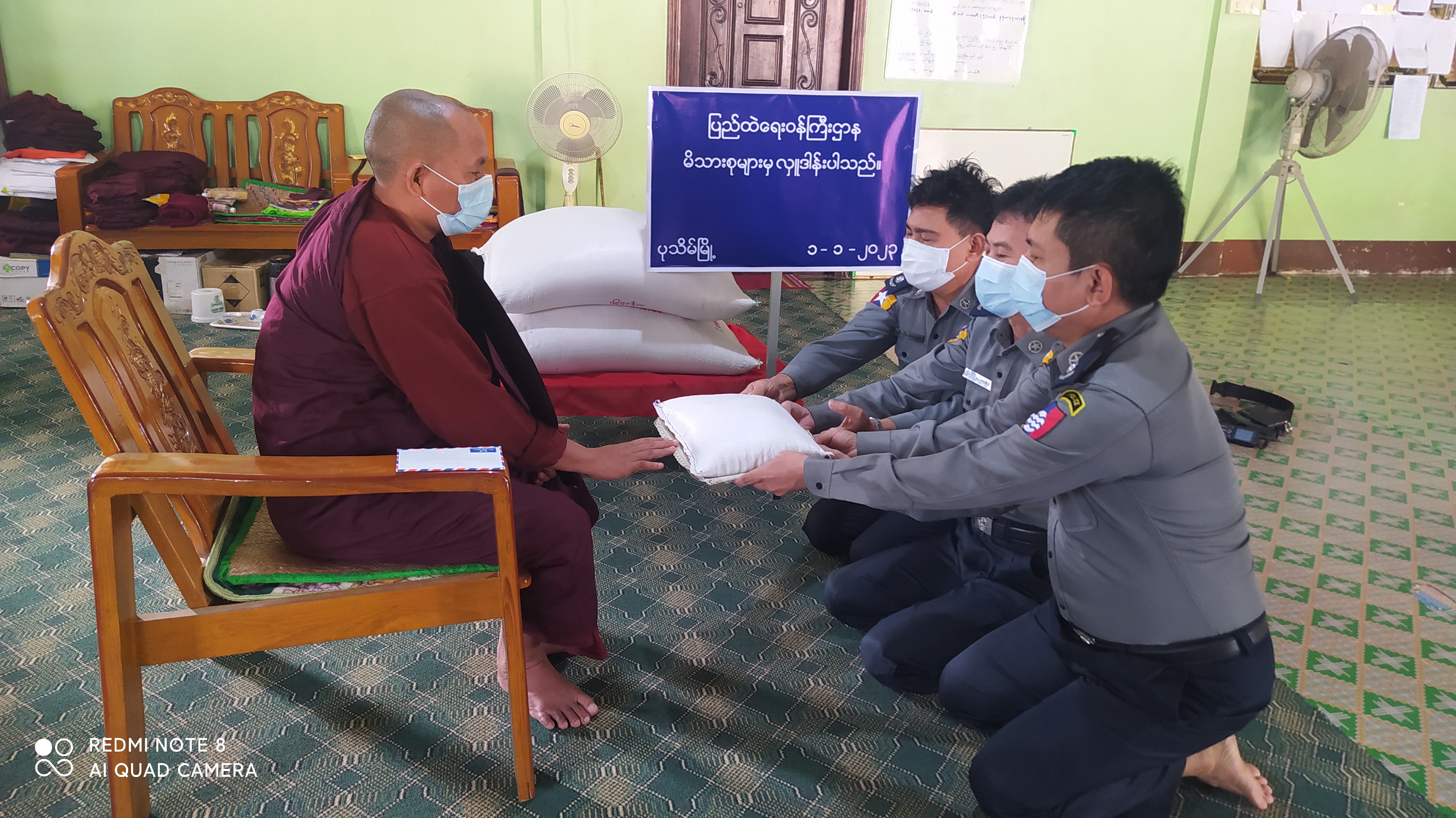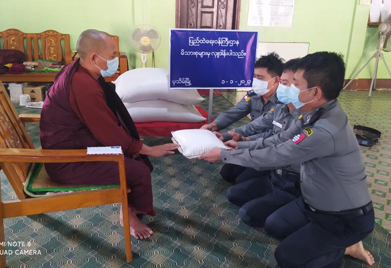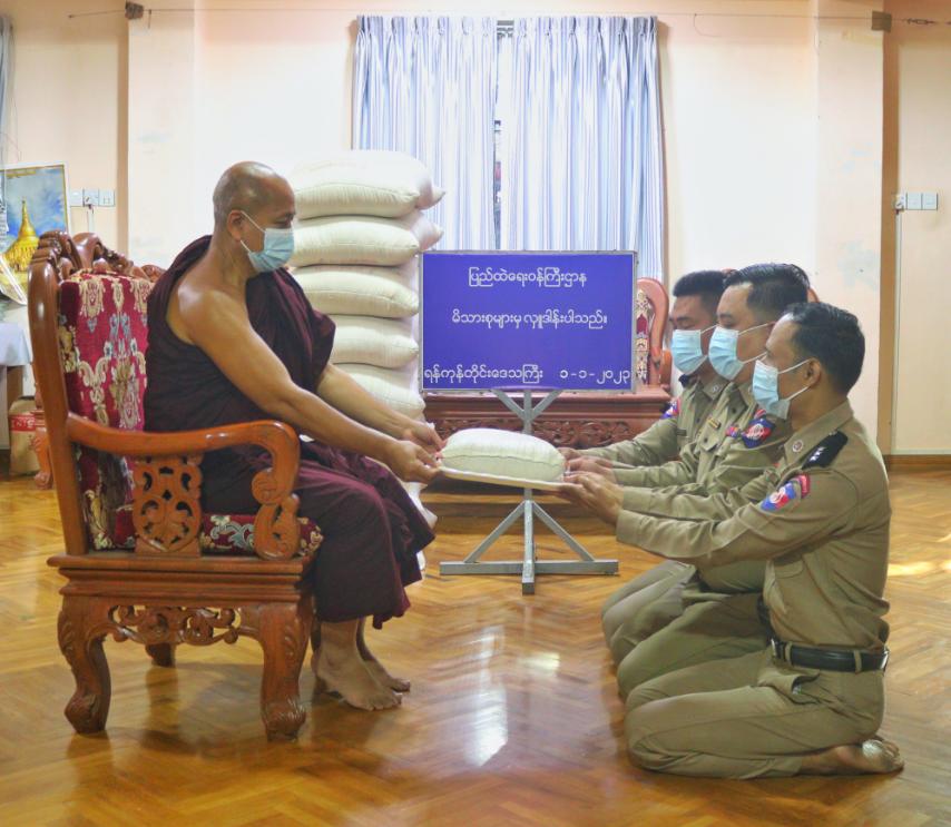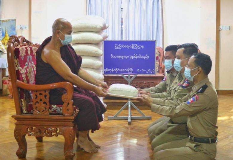 ပြည်ထဲရေးဝန်ကြီးဌာန၊ တပ်ဖွဲ့ဝင်/ဝန်ထမ်း အရာထမ်း၊ အမှုထမ်းမိသားစုများက မြို့နယ်အသီးသီးရှိ ဘုန်းတော်ကြီးကျောင်းများသို့ ဆွမ်းဆန်တော်နှင့် ဆန်ကြာဆံများ ဆက်ကပ်လှူဒါန်းခြင်းကို ဆောင်ရွက်လျက်ရှိသည်။