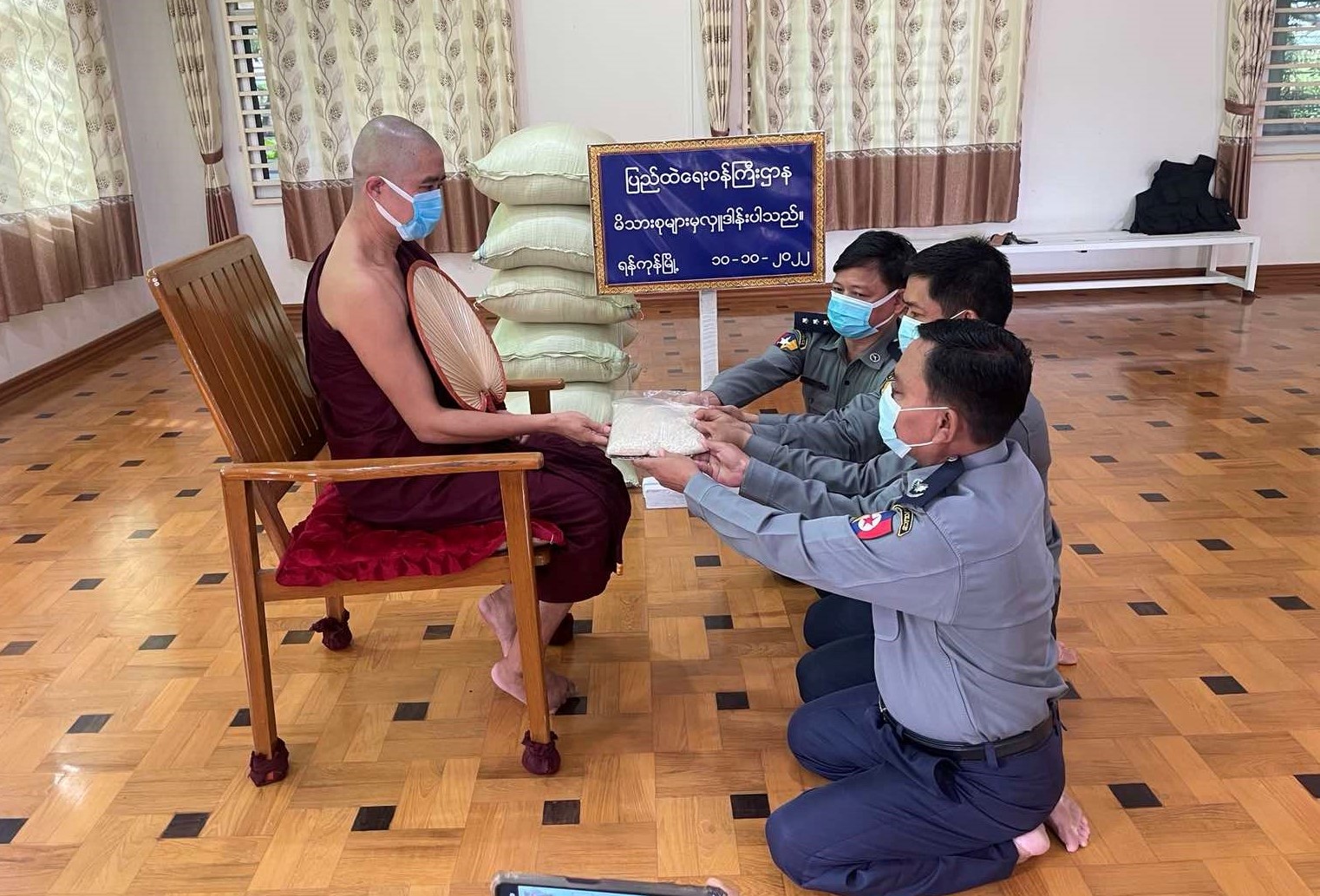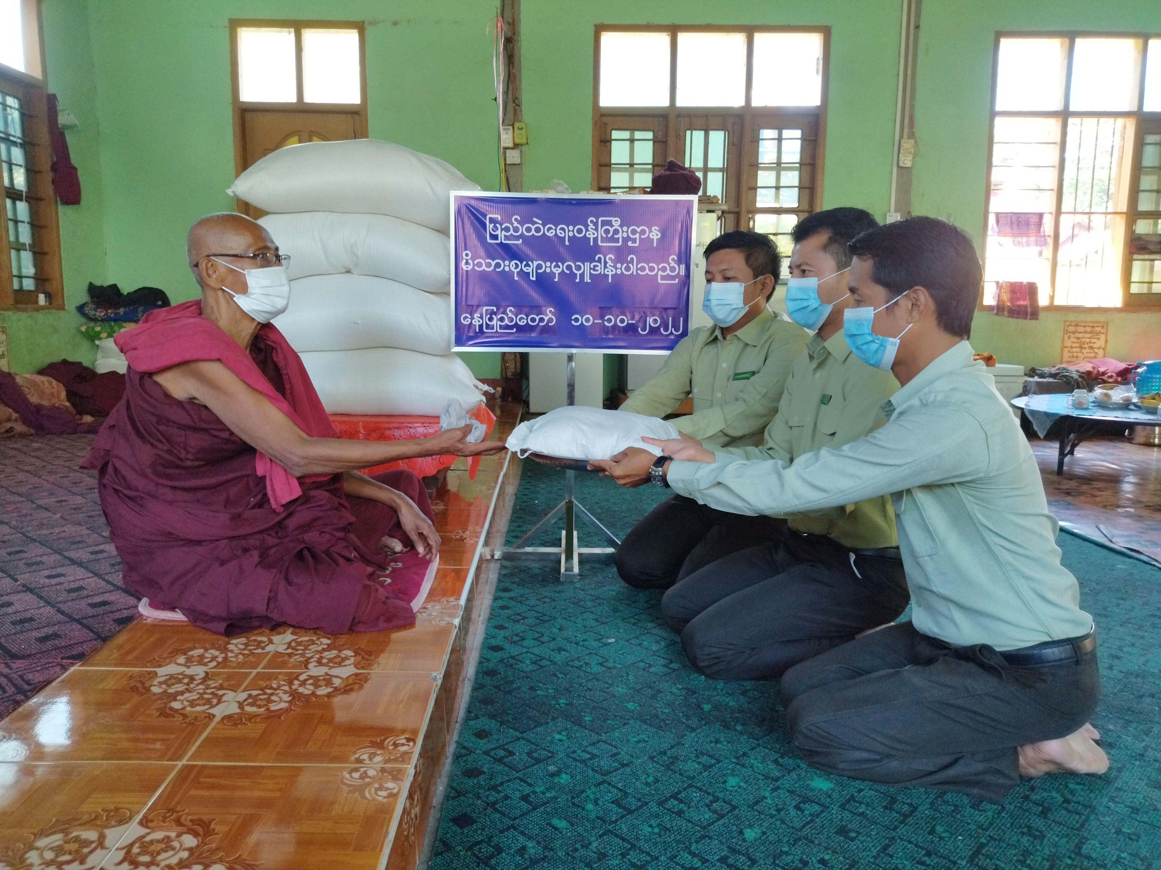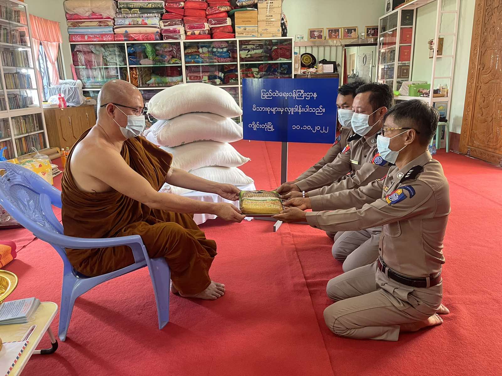 ပြည်ထဲရေးဝန်ကြီးဌာန၊ တပ်ဖွဲ့ဝင်/ ဝန်ထမ်း အရာထမ်း၊ အမှုထမ်းမိသားစုများက မြို့နယ် အသီးသီးရှိ ဘုန်းတော်ကြီးကျောင်းများသို့ ဆွမ်းဆန်တော်နှင့် ဆန်ကြာဆံများ ဆက်ကပ်လှူဒါန်း လျက်ရှိသည်။