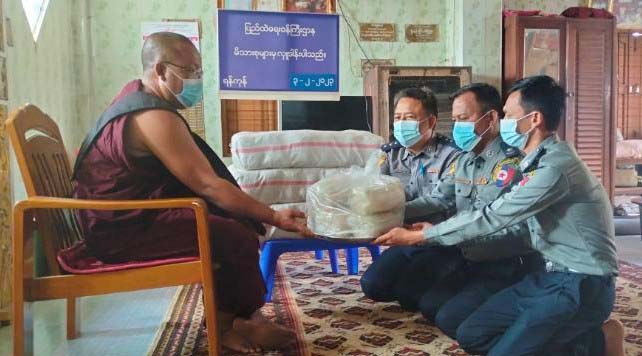 ပြည်ထဲရေးဝန်ကြီးဌာန၊ တပ်ဖွဲ့ဝင်/ဝန်ထမ်း အရာထမ်း၊ အမှုထမ်းမိသားစုများက မြို့နယ် အသီးသီးရှိ ဘုန်းတော်ကြီးကျောင်းများသို့ ဆွမ်းဆန်တော်နှင့် ဆန်ကြာဆံများ ဆက်ကပ်လှူဒါန်း လျက်ရှိသည်။