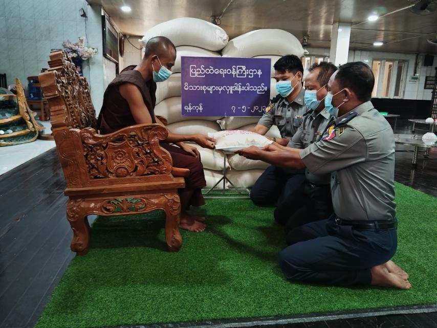 ပြည်ထဲရေးဝန်ကြီးဌာန၊ တပ်ဖွဲ့ဝင်/ဝန်ထမ်း အရာထမ်း၊ အမှုထမ်းမိသားစုများက မြို့နယ်အသီးသီးရှိ ဘုန်းတော်ကြီးကျောင်းများသို့ ဆွမ်းဆန်တော်နှင့် ဆန်ကြာဆံများ ဆက်ကပ်လှူဒါန်းခြင်းကို ဆောင်ရွက်လျက်ရှိသည်။