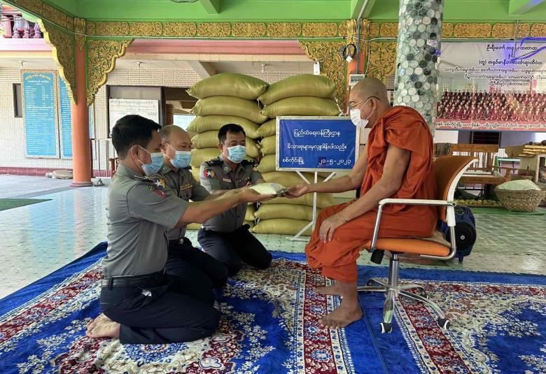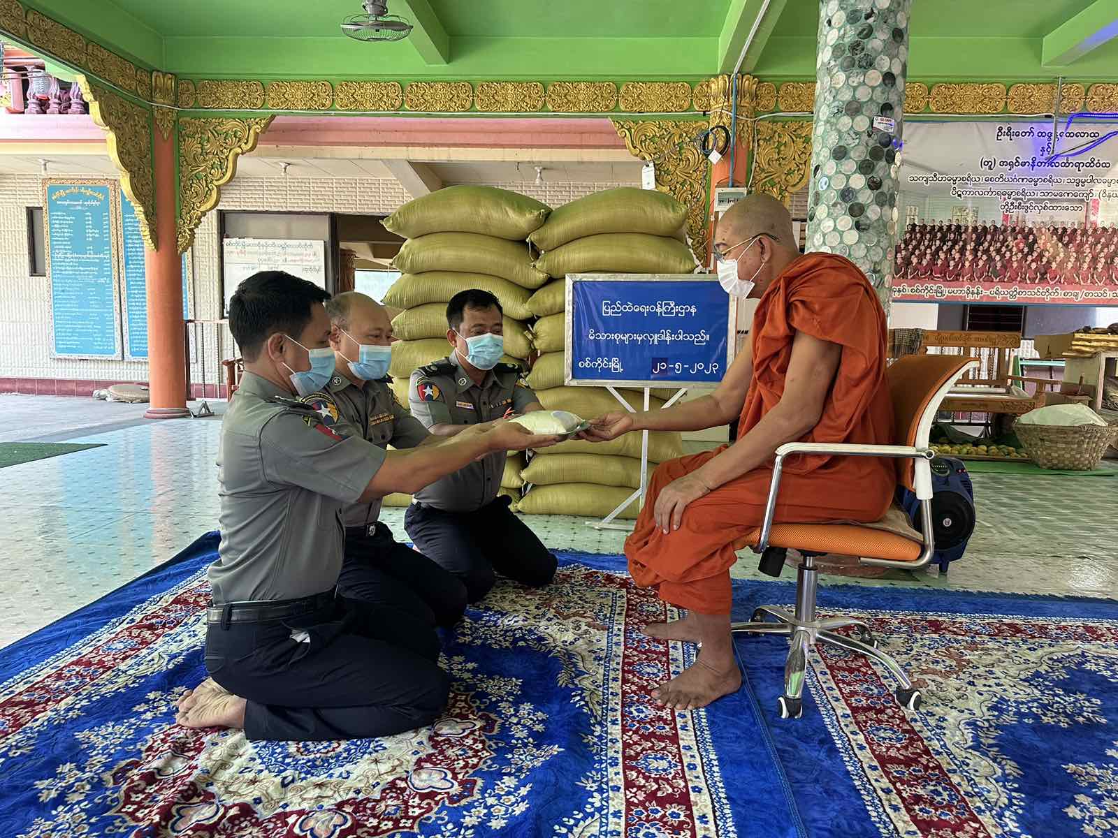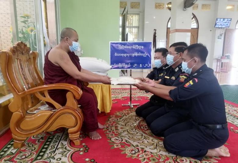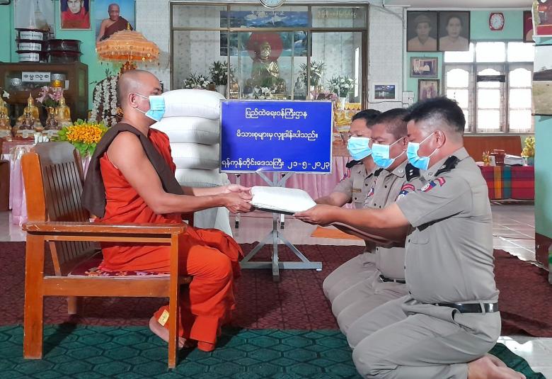 ပြည်ထဲရေးဝန်ကြီးဌာန၊ တပ်ဖွဲ့ဝင်/ဝန်ထမ်း အရာထမ်း၊ အမှုထမ်းမိသားစုများက မြို့နယ်အသီးသီးရှိ ဘုန်းတော်ကြီးကျောင်းများသို့ ဆွမ်းဆန်တော်နှင့် ဆန်ကြာဆံများ ဆက်ကပ်လှူဒါန်းလျက်ရှိသည်။