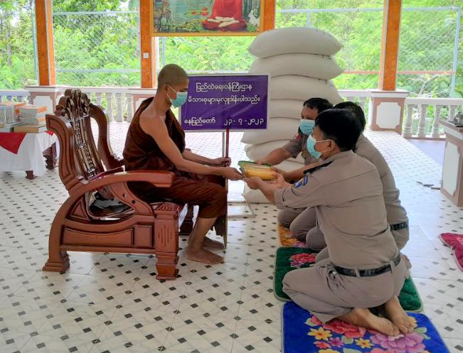 ပြည်ထဲရေးဝန်ကြီးဌာန၊ တပ်ဖွဲ့ဝင်/ ဝန်ထမ်း အရာထမ်း၊ အမှုထမ်းမိသားစုများက မြို့နယ် အသီးသီးရှိ ဘုန်းတော်ကြီးကျောင်းများသို့ ဆွမ်းဆန်တော်နှင့် ဆန်ကြာဆံများဆက်ကပ် လှူဒါန်းခြင်းကို ဆောင်ရွက်လျက်ရှိသည်။