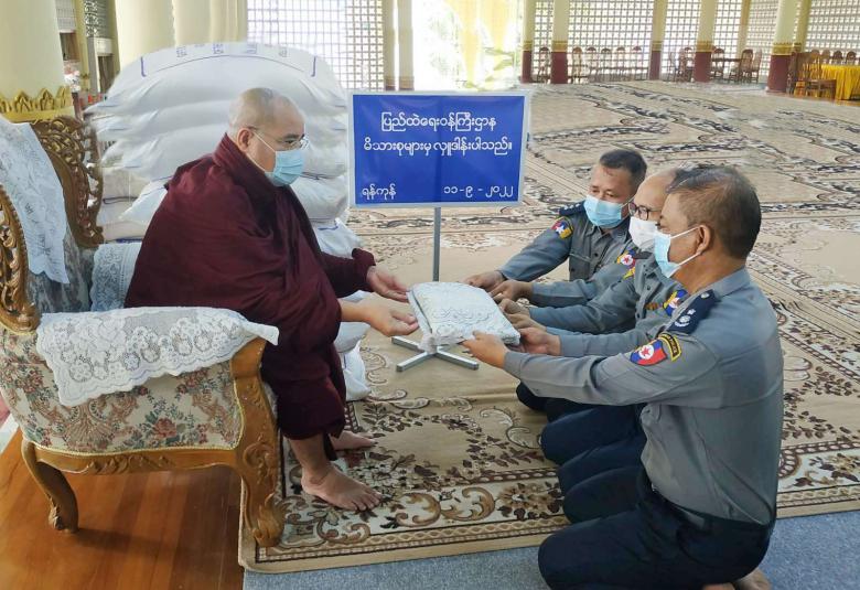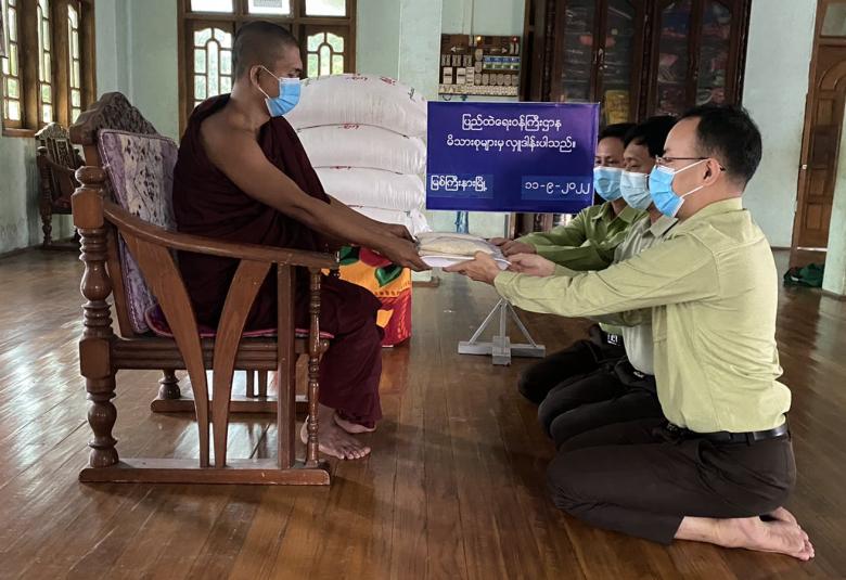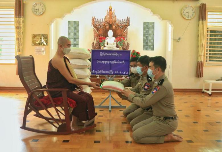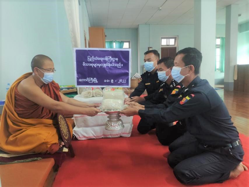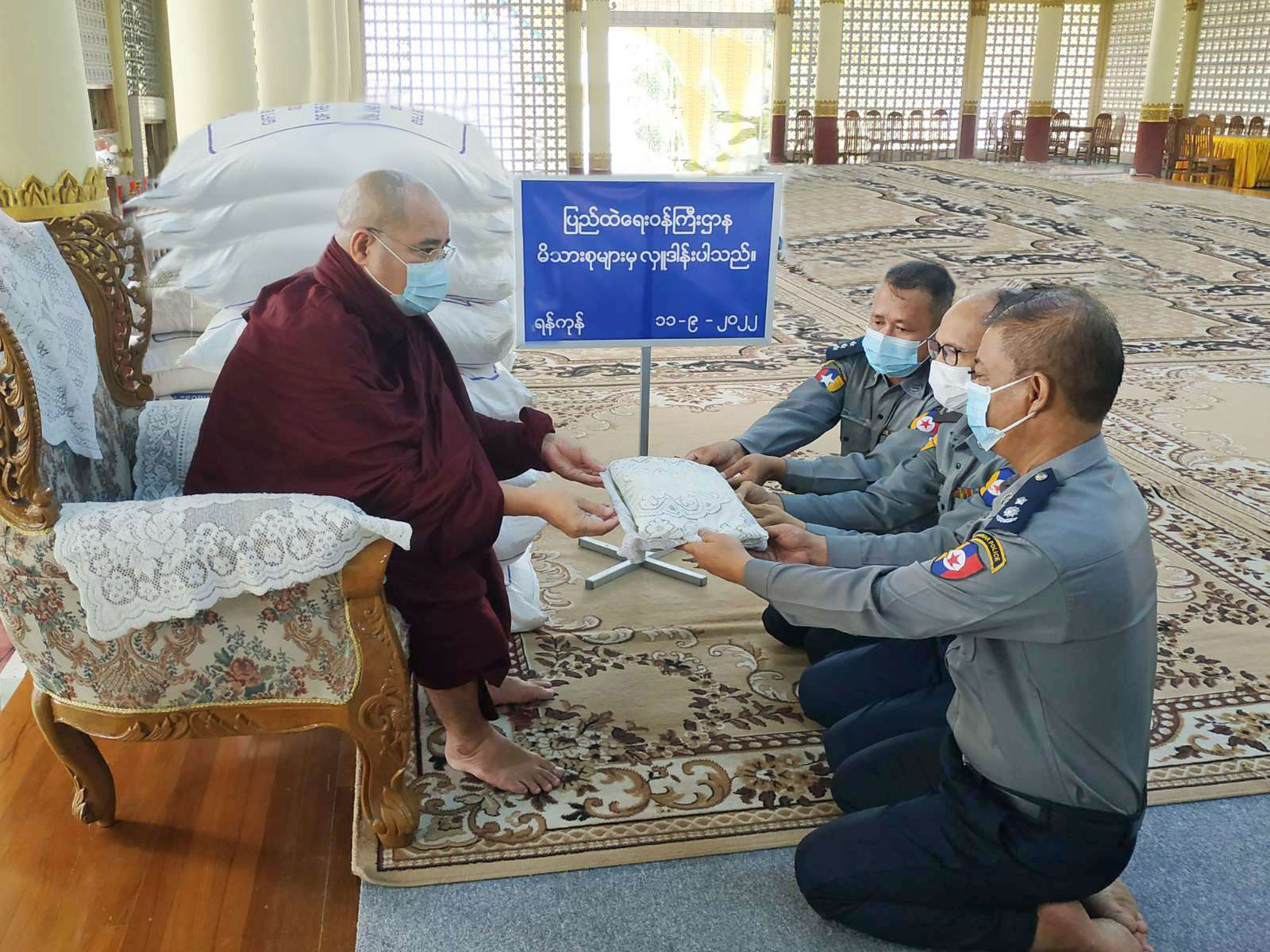 ပြည်ထဲရေးဝန်ကြီးဌာန၊ တပ်ဖွဲ့ဝင်/ ဝန်ထမ်း အရာထမ်း၊ အမှုထမ်း မိသားစုများက မြို့နယ်အသီးသီးရှိ ဘုန်းတော်ကြီးကျောင်းများသို့ ဆွမ်းဆန်တော်နှင့် ဆန်ကြာဆံများ ဆက်ကပ်လှူဒါန်းခြင်းကို ဆောင်ရွက်လျက်ရှိသည်။