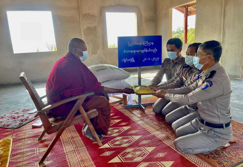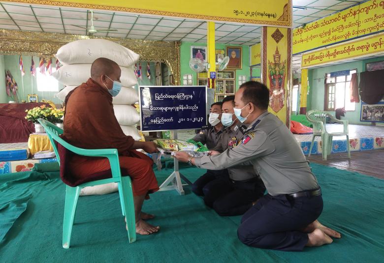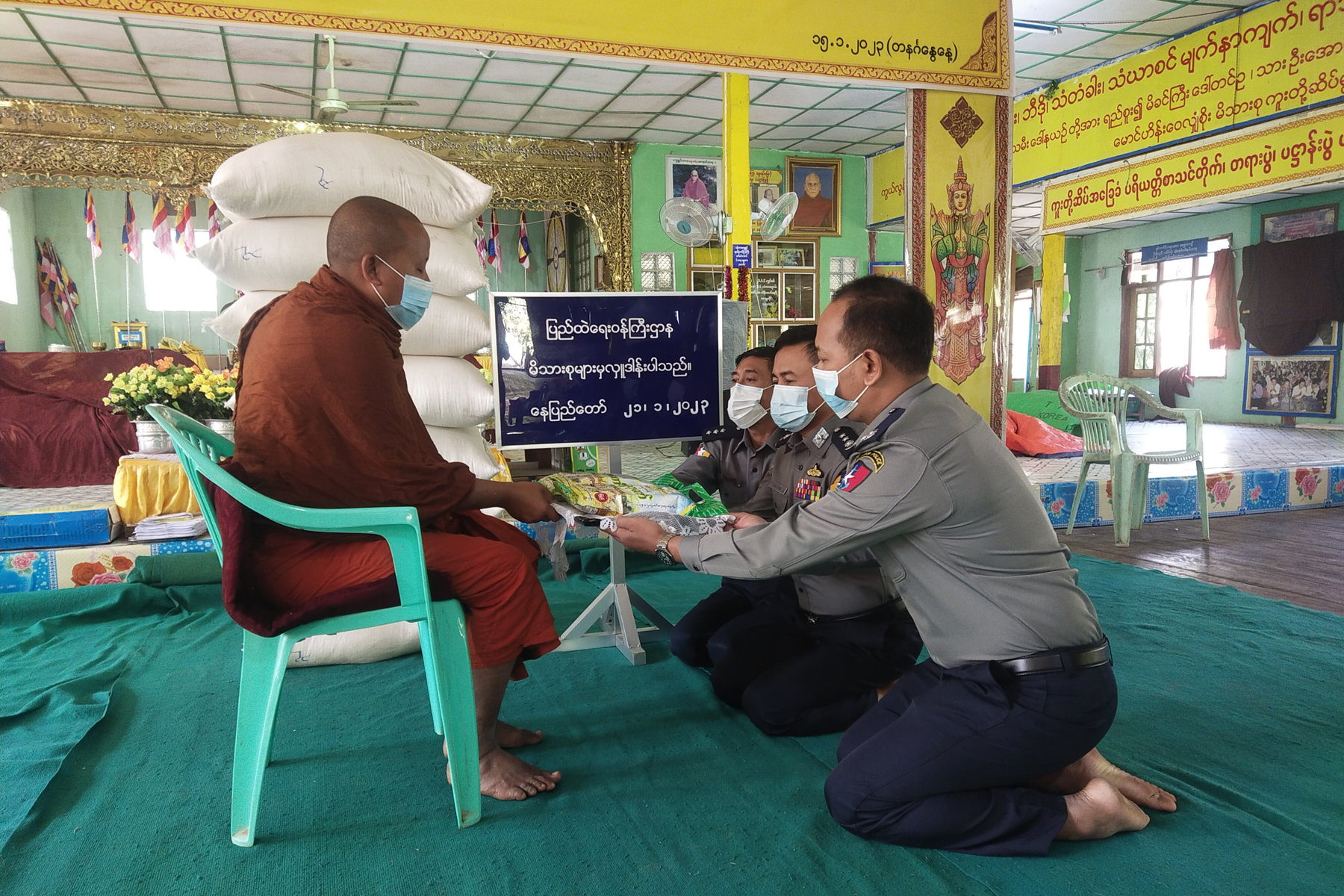 ပြည်ထဲရေးဝန်ကြီးဌာန၊ အရာထမ်း၊ အမှုထမ်းမိသားစုများက မြို့နယ်အသီးသီးရှိ ဘုန်း တော်ကြီးကျောင်းများသို့ ဆွမ်းဆန်တော်နှင့် ဆန်ကြာဆံများ ဆက်ကပ်လှူဒါန်းလျက်ရှိသည်။