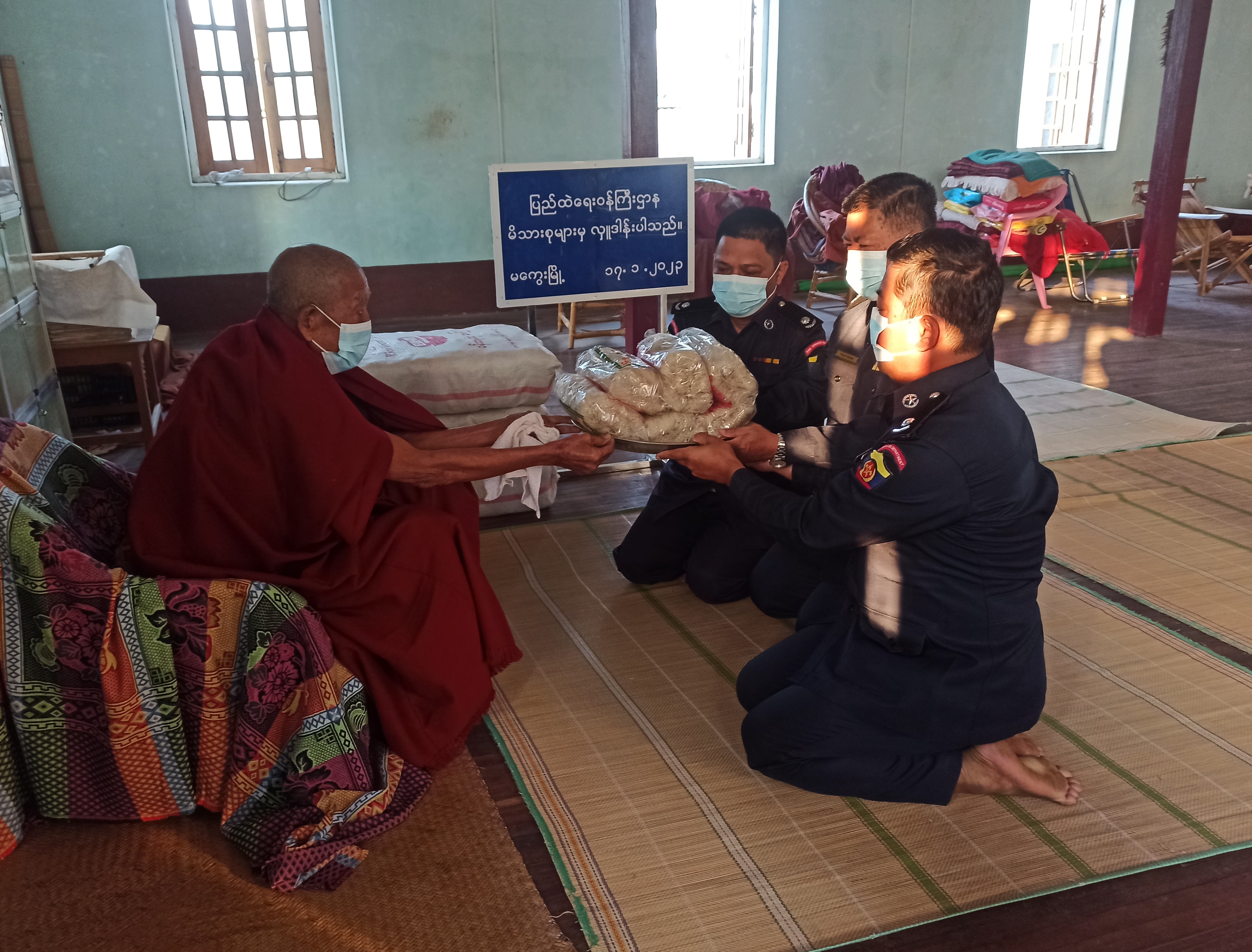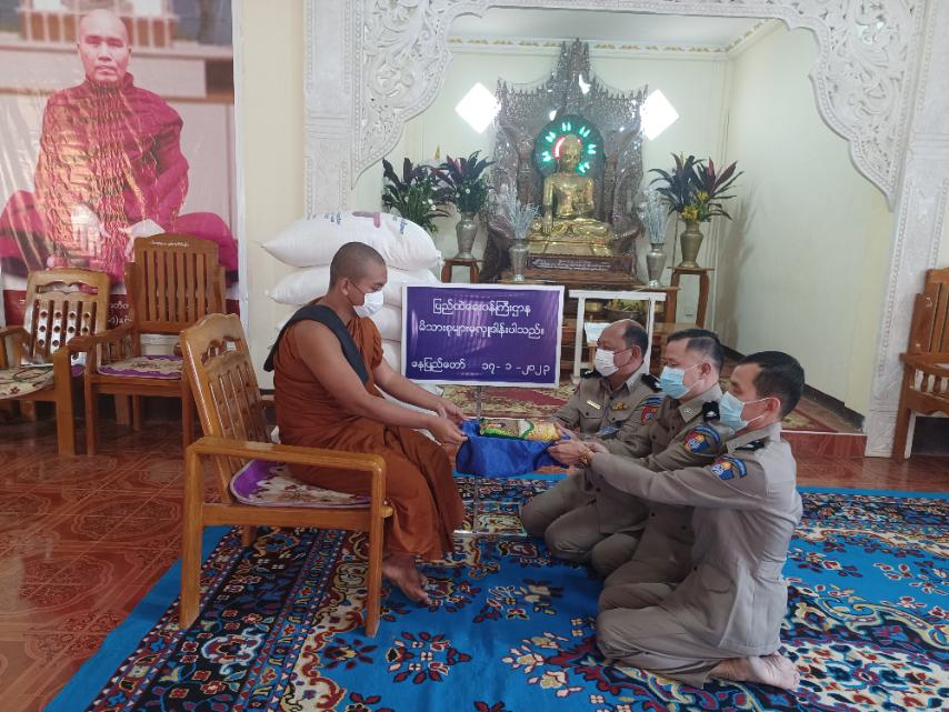 ပြည်ထဲရေးဝန်ကြီးဌာန၊ တပ်ဖွဲ့ဝင်/ဝန်ထမ်း အရာထမ်း၊ အမှုထမ်းမိသားစုများက မြို့နယ် အသီးသီးရှိ ဘုန်းတော်ကြီးကျောင်းများသို့ ဆွမ်းဆန်တော်နှင့် ဆန်ကြာဆံများ ဆက်ကပ်လှူဒါန်းခြင်းကို ဆောင်ရွက်လျက်ရှိသည်။
