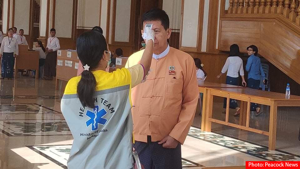 ထို့ပြင် လွှတ်တော်ဝင်းအတွင်း ဝင်ရောက်လာသည့် လွှတ်တော်ဝန်ထမ်းများနှင့် သတင်းမီဒီယာသမားများကိုလည်း အပူချိန်တိုင်းတာပေး၍ ကျန်းမာရေးစစ်ဆေးမှုများ ဆောင်ရွက်ကြသည်။
