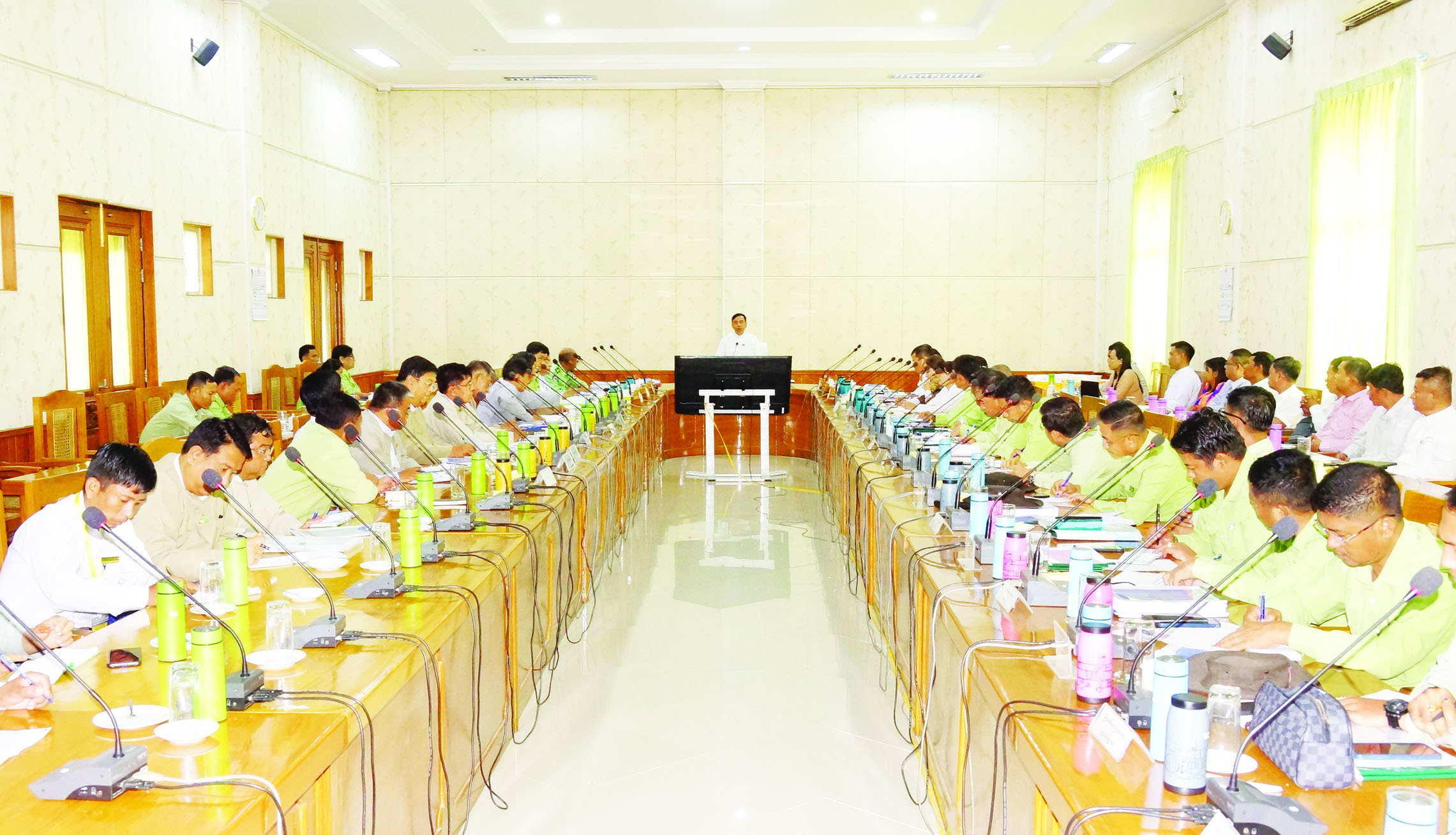 ရှေးဦးစွာ  နေပြည်တော်ကောင်စီအတွင်းရေးမှူး ဦးတင်မောင်ဆွေက  နေပြည်တော် ကောင်စီနယ်မြေ အတွင်း  နိုင်ငံ့စီးပွားမြှင့်တင်ရေး ရန်ပုံငွေဖြင့် ဆောင်ရွက်နေသည့် လုပ်ငန်းများနှင့် စပ်လျဉ်း၍ ရှင်းလင်းတင်ပြပြီး ဌာနဆိုင်ရာများ၊ စိုက်ပျိုးမွေးမြူ ရေးလုပ်ငန်းရှင်များနှင့် စီးပွားရေး လုပ်ငန်းရှင် များက  နိုင်ငံ့စီးပွားမြှင့်တင်ရေးရန်ပုံငွေဖြင့် ဆောင်ရွက်နေသည့် စိုက်ပျိုးမွေးမြူရေး လုပ်ငန်းများ၊ လက်ရှိဆောင်ရွက်နေမှုနှင့် ရှေ့ဆက်ဆောင်ရွက်မည့်လုပ်ငန်းများနှင့် စပ်လျဉ်း၍ ရှင်းလင်းတင်ပြ ကြသည်။