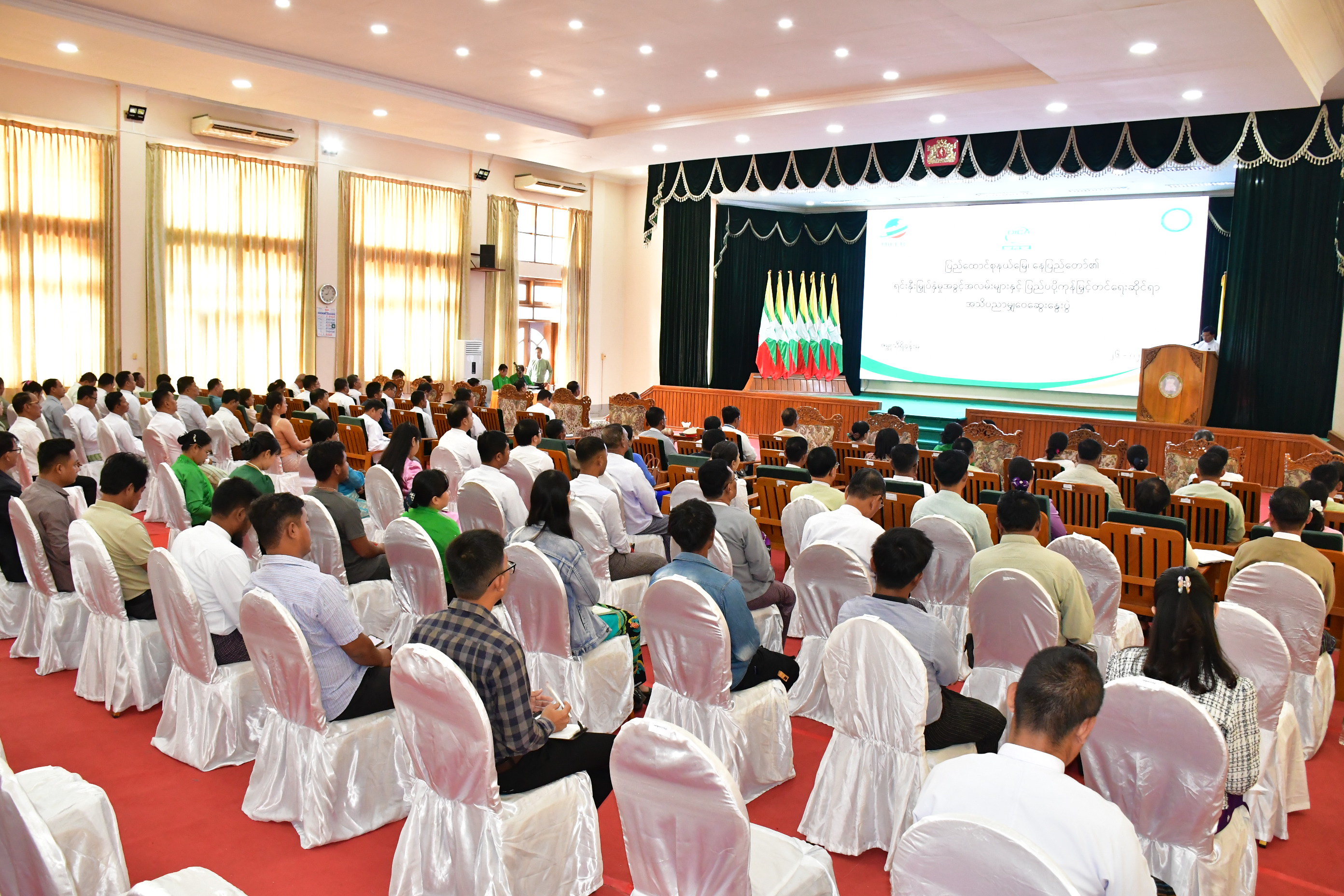 ရင်းနှီးမြှုပ်နှံမှုနှင့် နိုင်ငံခြားစီးပွားဆက်သွယ်ရေးဝန်ကြီးဌာနနှင့် နေပြည်တော်ကောင်စီ ရင်းနှီးမြှုပ်နှံမှုကော်မတီတို့ ကြီးမှူးကျင်းပသည့် ပြည်ထောင်စုနယ်မြေ နေပြည်တော်၏ ရင်းနှီးမြှုပ်နှံမှုအခွင့် အလမ်းများနှင့် ပြည်ပပို့ကုန်မြှင့်တင်ရေးဆိုင်ရာ အသိပညာမျှဝေဆွေးနွေးပွဲကို ယနေ့နံနက်ပိုင်းတွင် နေပြည်တော်ကောင်စီရုံး ဇမ္ဗူသီရိခန်းမ၌ ကျင်းပသည်။